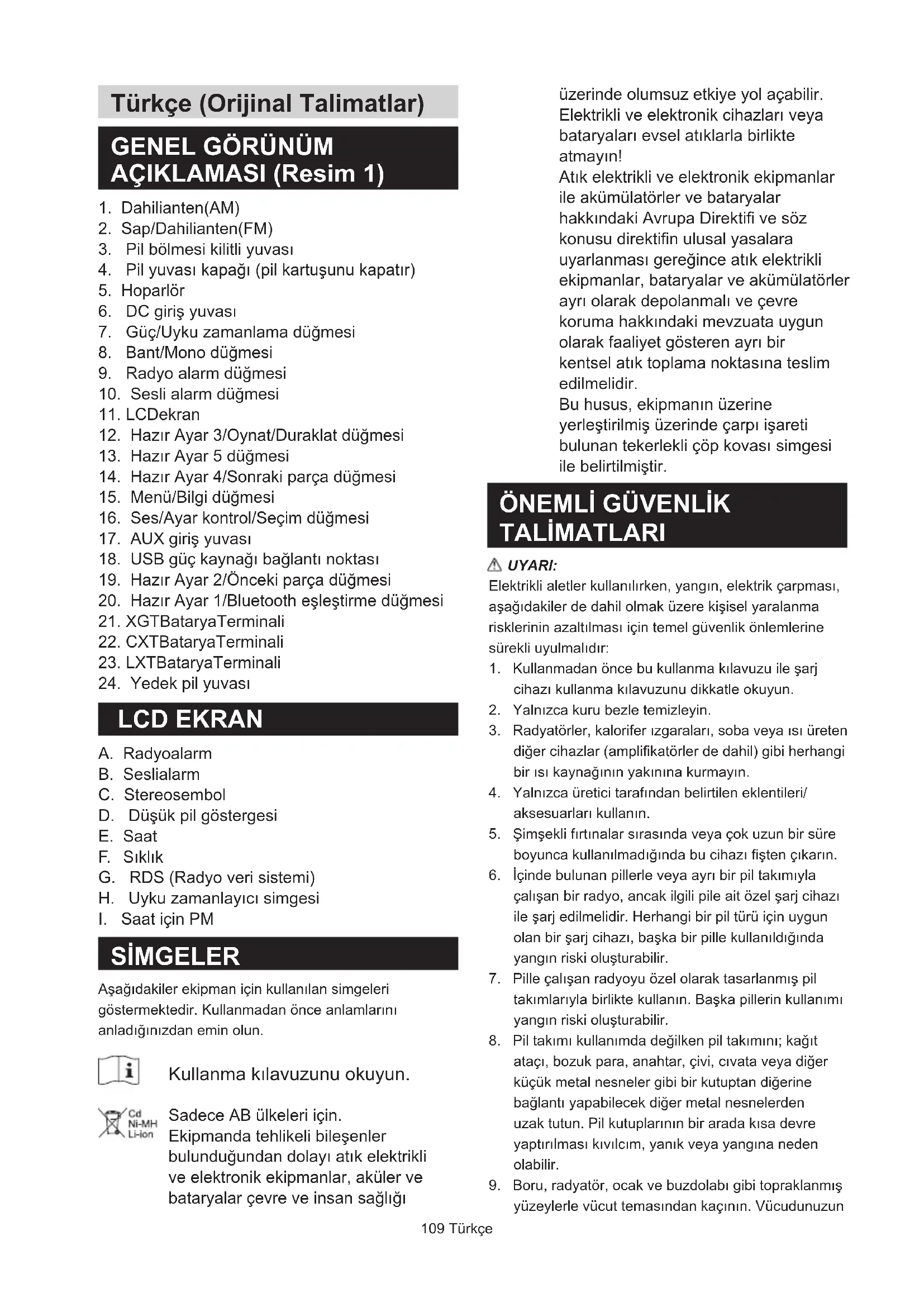 1. Kullanmadan önce bu kullanma kılavuzu ile şarj
