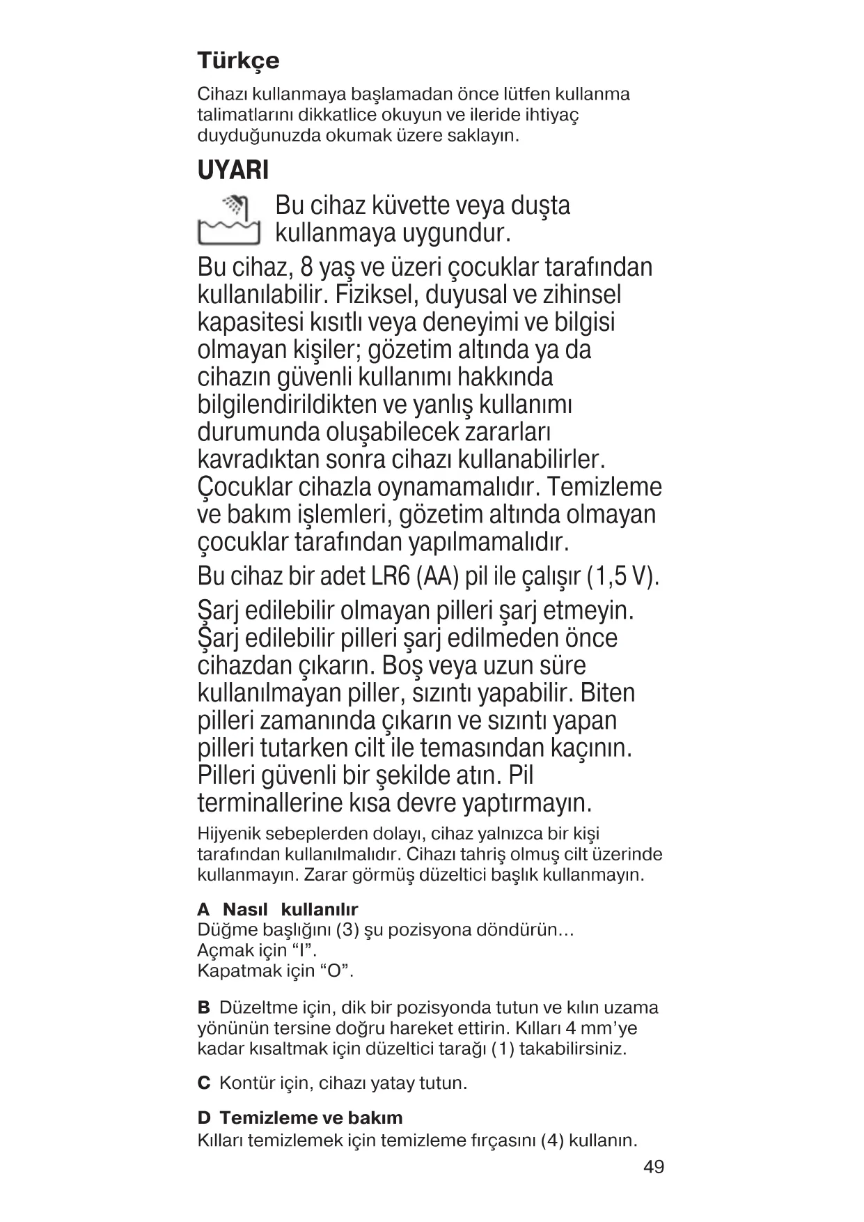 şekilde kullanılması gerekmektedir. BRAUN ürünlerine Procter & Gamble Tüketim Malları Sanayi A.Ş.‘nin yetkili kıldığı servis elemanları dışındaki şahıslar tarafından bakım onarım veya başka bir nedenle müdahale edilmemelidir.
