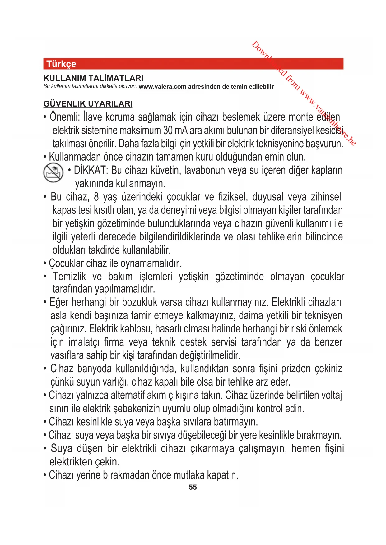 Bu kullanım talimatlarını dikkatle okuyun. www.valera.com adresinden de temin edilebilir