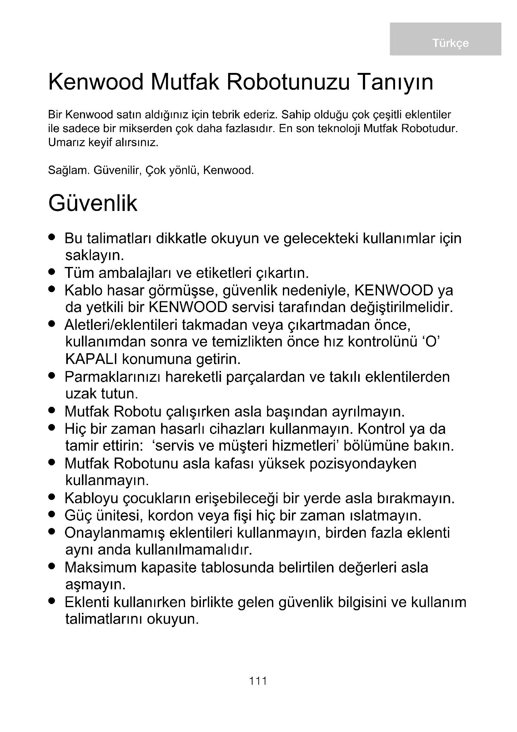 - Cihazınızın çalışması ile ilgili herhangi bir sorun yaşarsanız, yardım istemeden önce bu kılavuzdaki “sorun giderme kılavuzu” bölümüne bakın veya www.kenwoodworld.com adresini ziyaret edin.