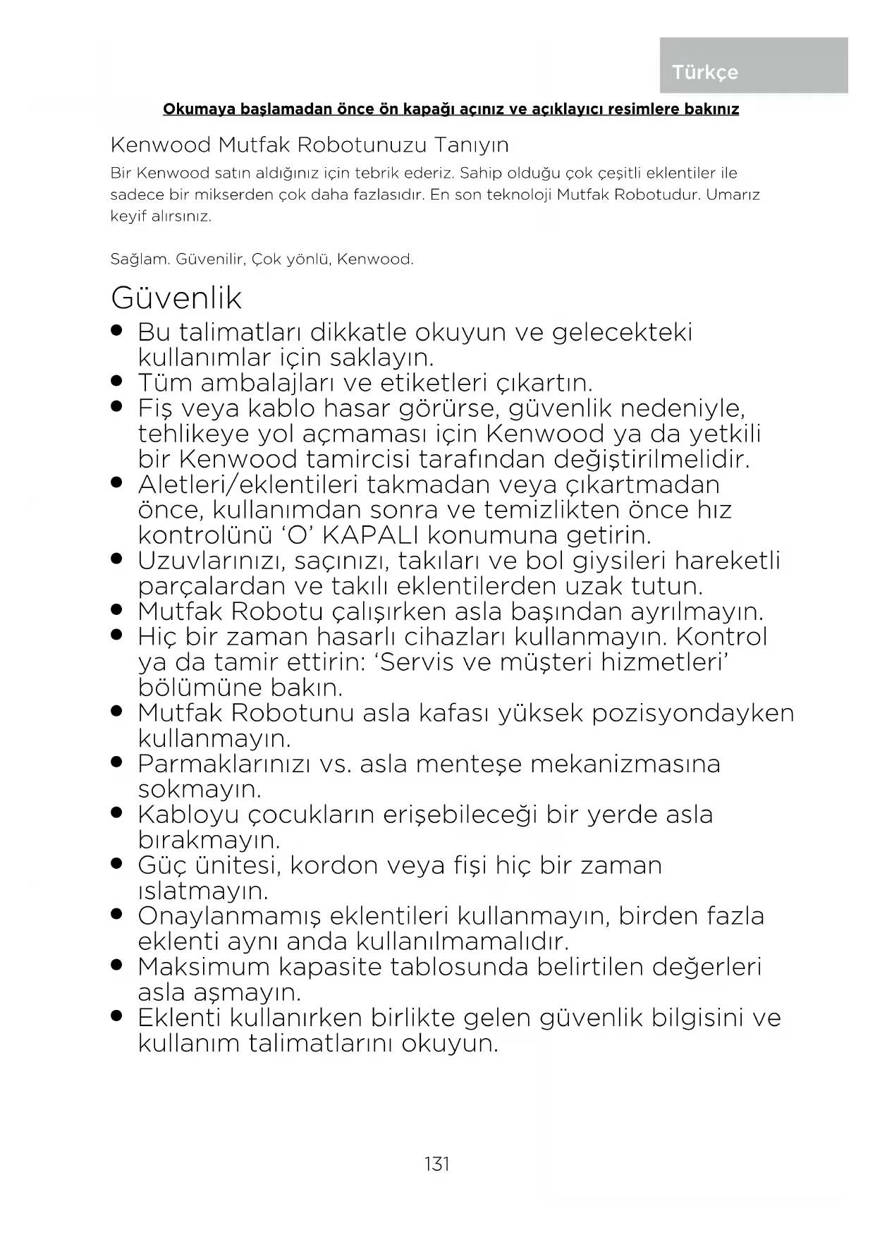 Cihazınızın çalışması ile ilgili herhangi bir sorun yaşarsanız, yardım istemeden önce bu kılavuzdaki “Sorun giderme kılavuzu” bölümüne bakın veya www.kenwoodworld.com adresini ziyaret edin.
