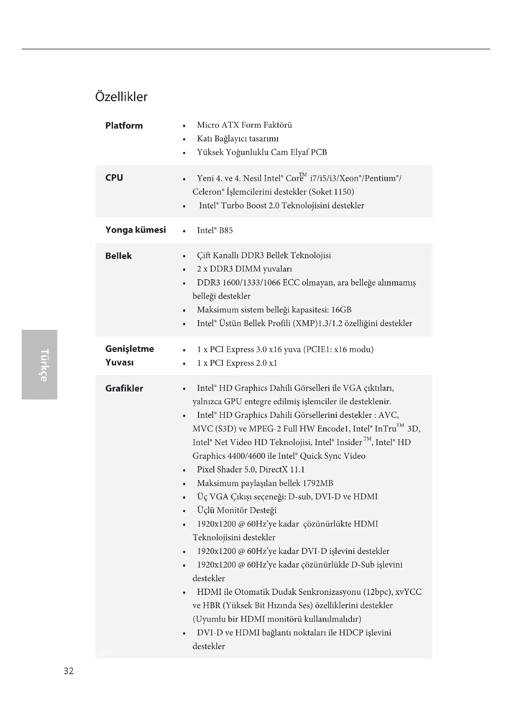 KULLANIM KILAVUZU B85MHDS R2.0 ASROCK