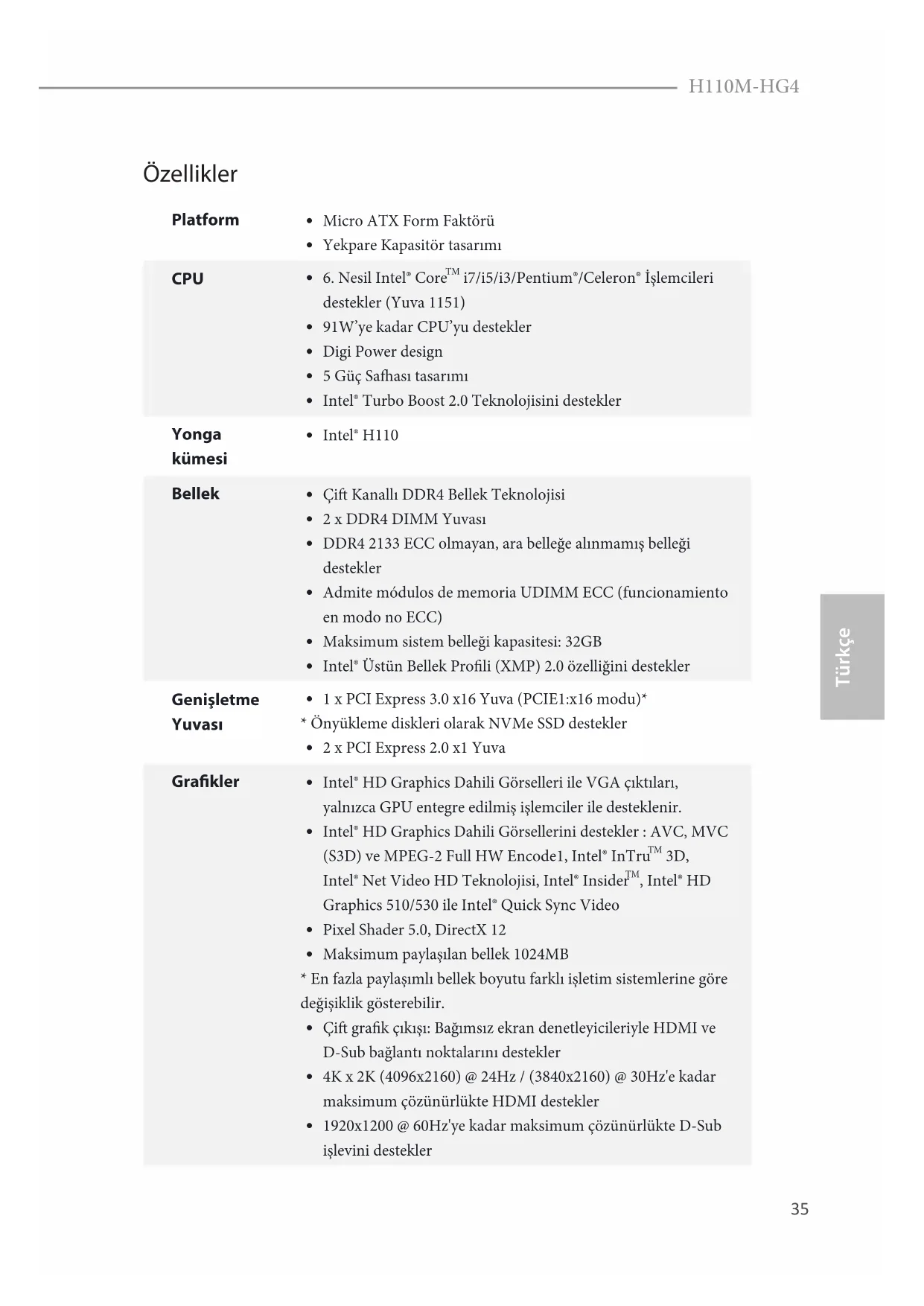 Türkçe H110M-HG4 Özellikler Platform