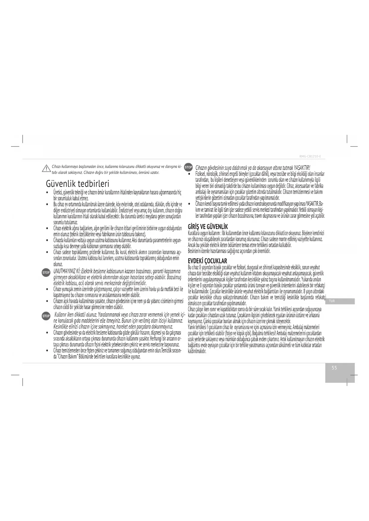 KULLANIM KILAVUZU RMGCB1210E Redmond