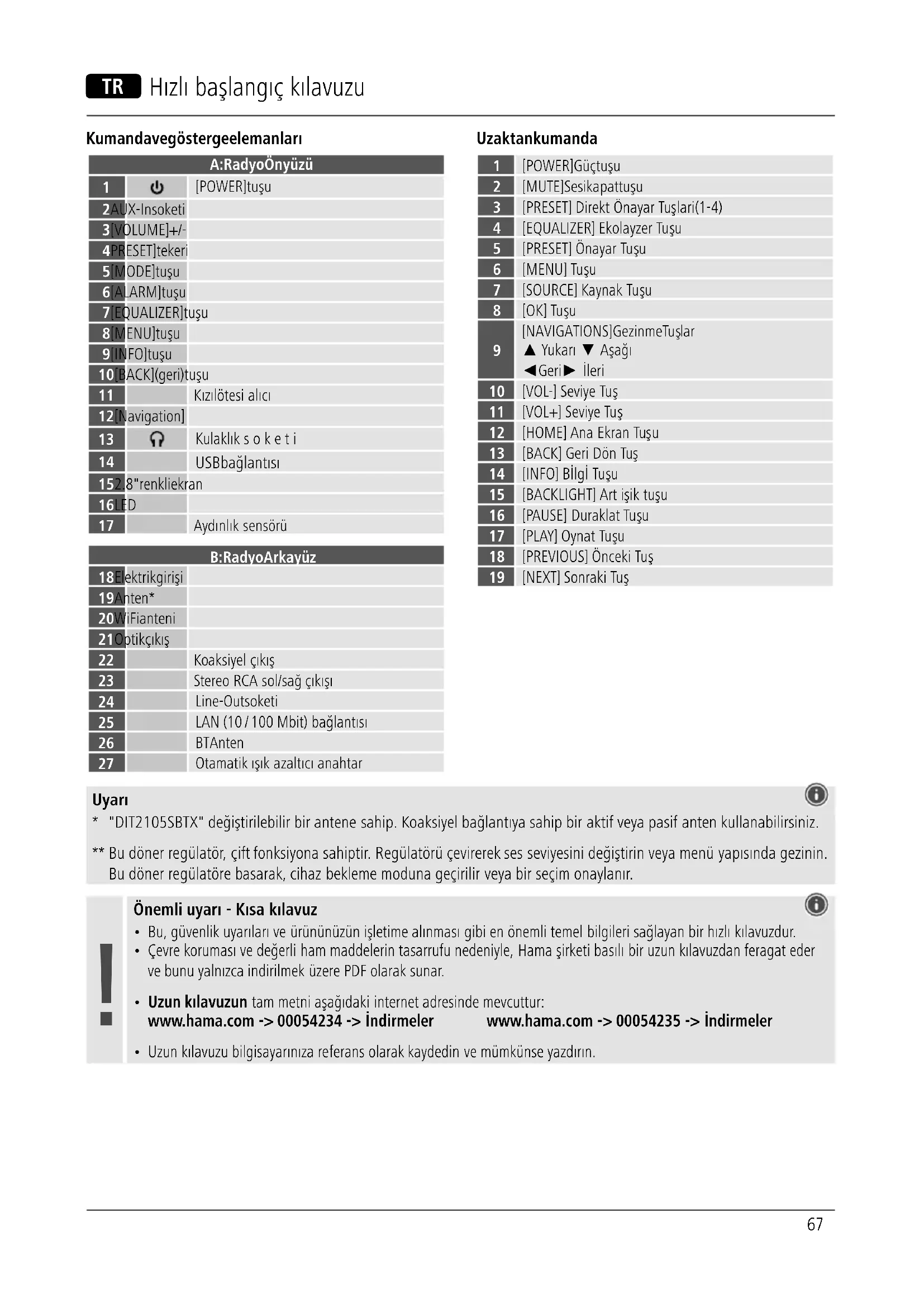 DIT2105SBTX - Radyo HAMA - Ücretsiz kullanım kılavuzu