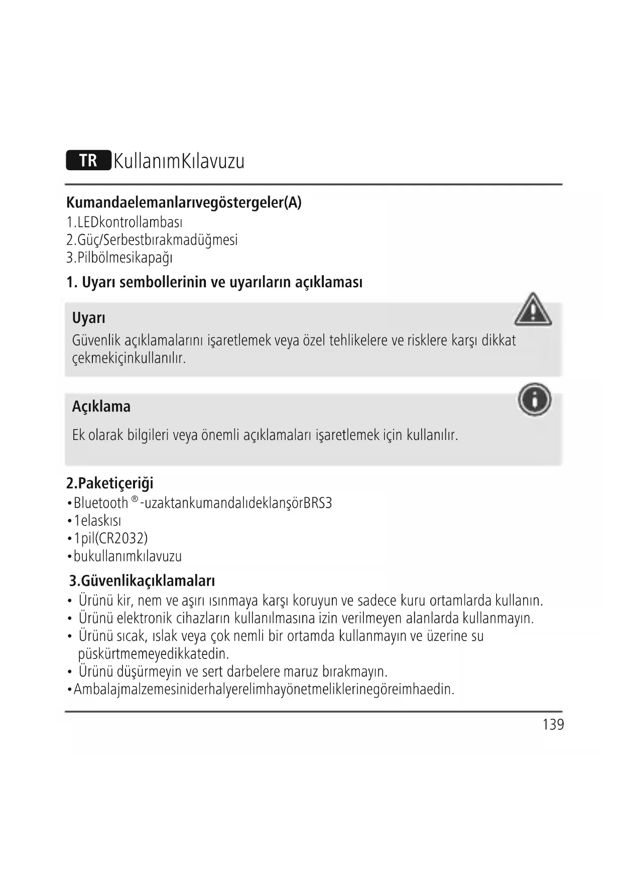 1. Uyarı sembollerinin ve uyarıların açıklaması