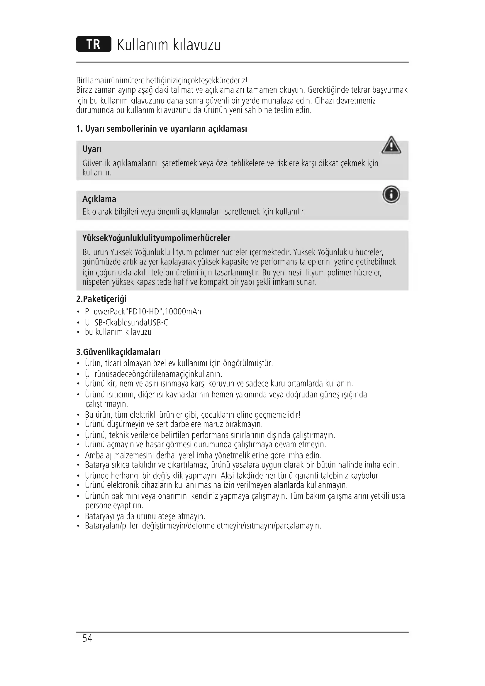 Uyarı Güvenlik açıklamalarını işaretlemek veya özel tehlikelereverisklerekarşı dikkat çekmek için kullanılır. Açıklama Ek olarak bilgileri veya önemli açıklamaları işaretlemek için kullanılır. Yüksek Yoğunluklu lityum polimer hücreler Bu ürün Yüksek Yoğunluklu lityum polimer hücreler içermektedir.Yüksek Yoğunluklu hücreler, günümüzde artıkazyer kaplayarak yüksek kapasite ve performans taleplerini yerine getirebilmek için çoğunlukla akıllı telefon üretimi için tasarlanmıştır. Bu yeni nesil lityum polimer hücreler, nispeten yüksek kapasitede hafif ve kompakt bir yapışekli imkanı sunar.