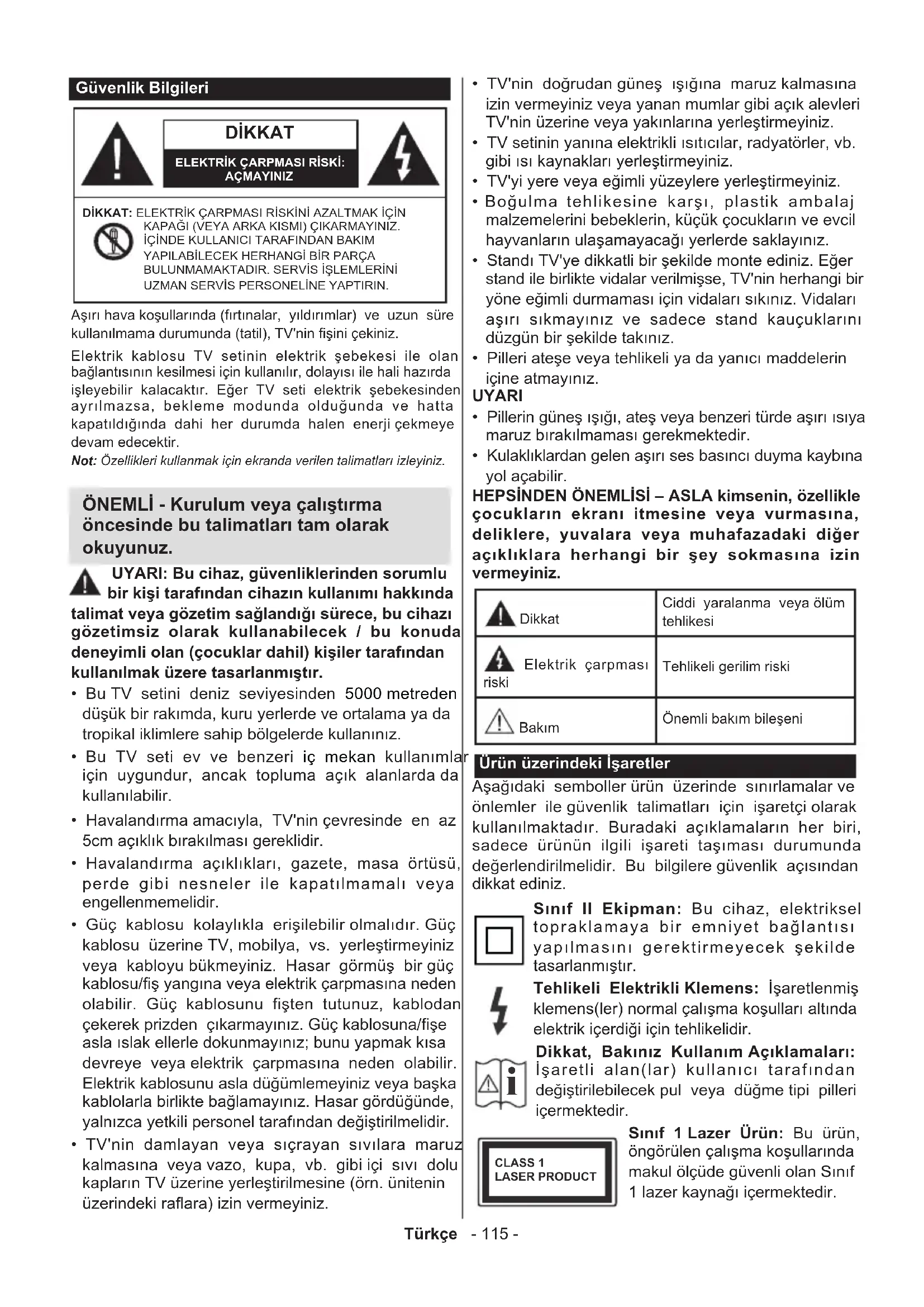 olabileceği için TV'nin içine herhangi bir sıvı girmesine lütfen dikkat ediniz.)