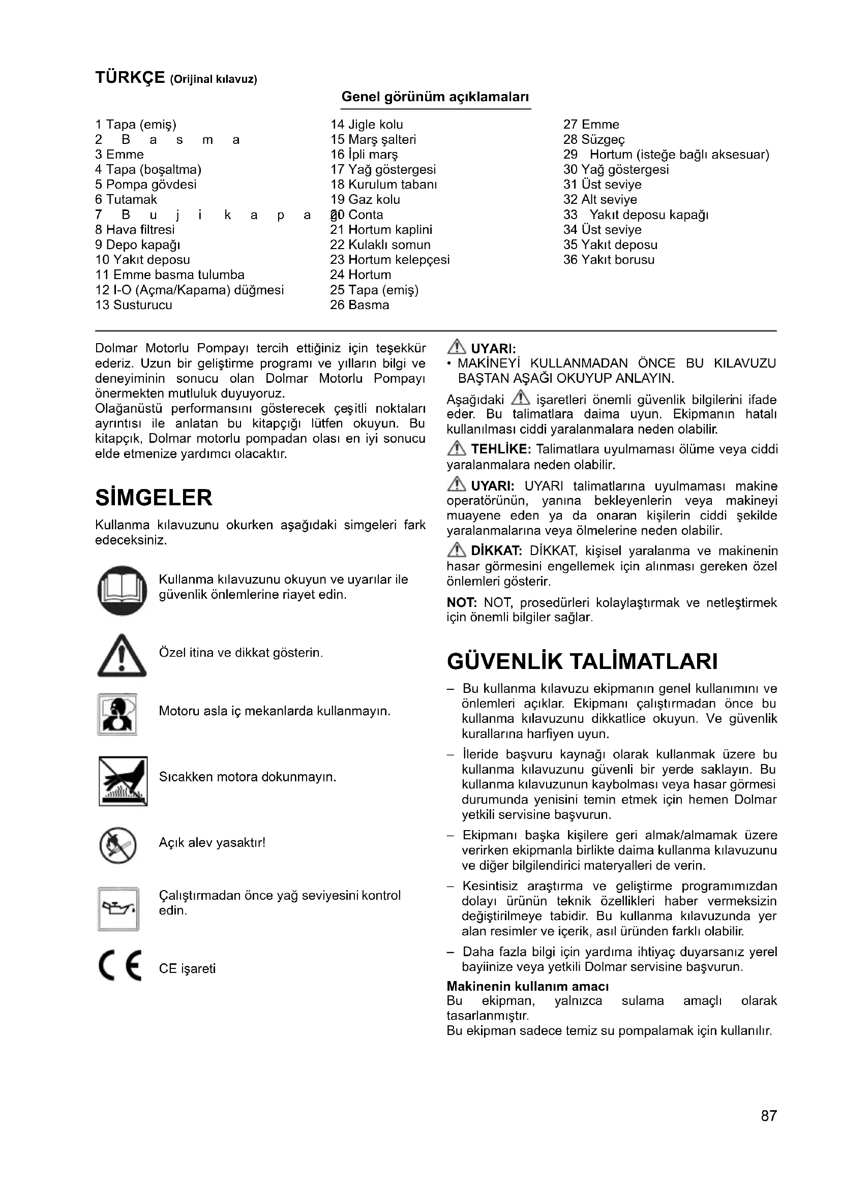 Olağanustu performansini进展情况 keseitli noktari ayrintisi ile anlatan bu kitapciigi luffen okuyun. Bu kitapcik, Dolmar motorlu pompadan olasi en iyi sonucu elde etmenize yardimci olacaktir.