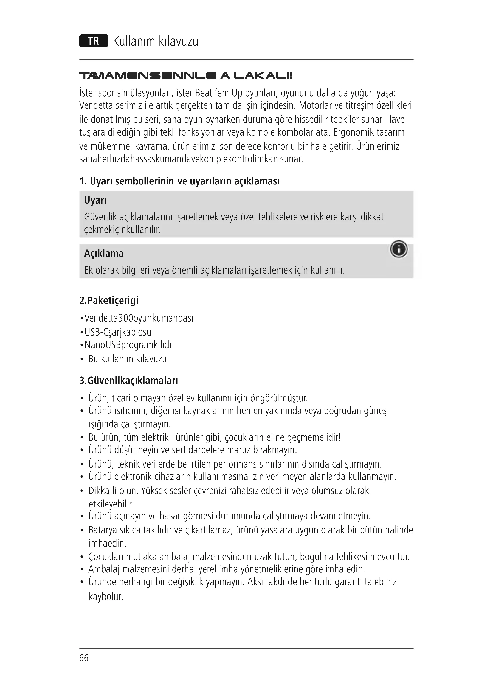 KULLANIM KILAVUZU uRage Vendetta 300 Unleashed HAMA
