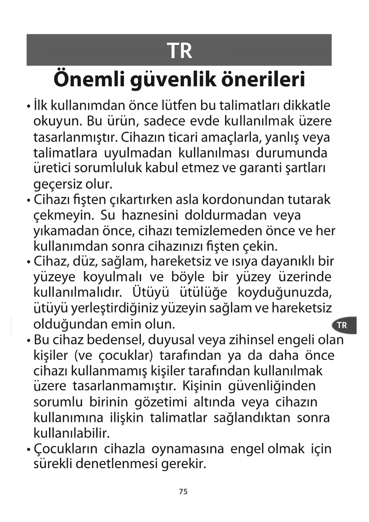 - İlk kullanımdan önce lutfen bu talimatları dikkatle okuyun. Bu urun, sadece evde kullanılmak uzere tasarlanmıştır. Cihazın ticari amaçlarla, yanlış veya talimatlara uyulmadan kullanılması durumunda