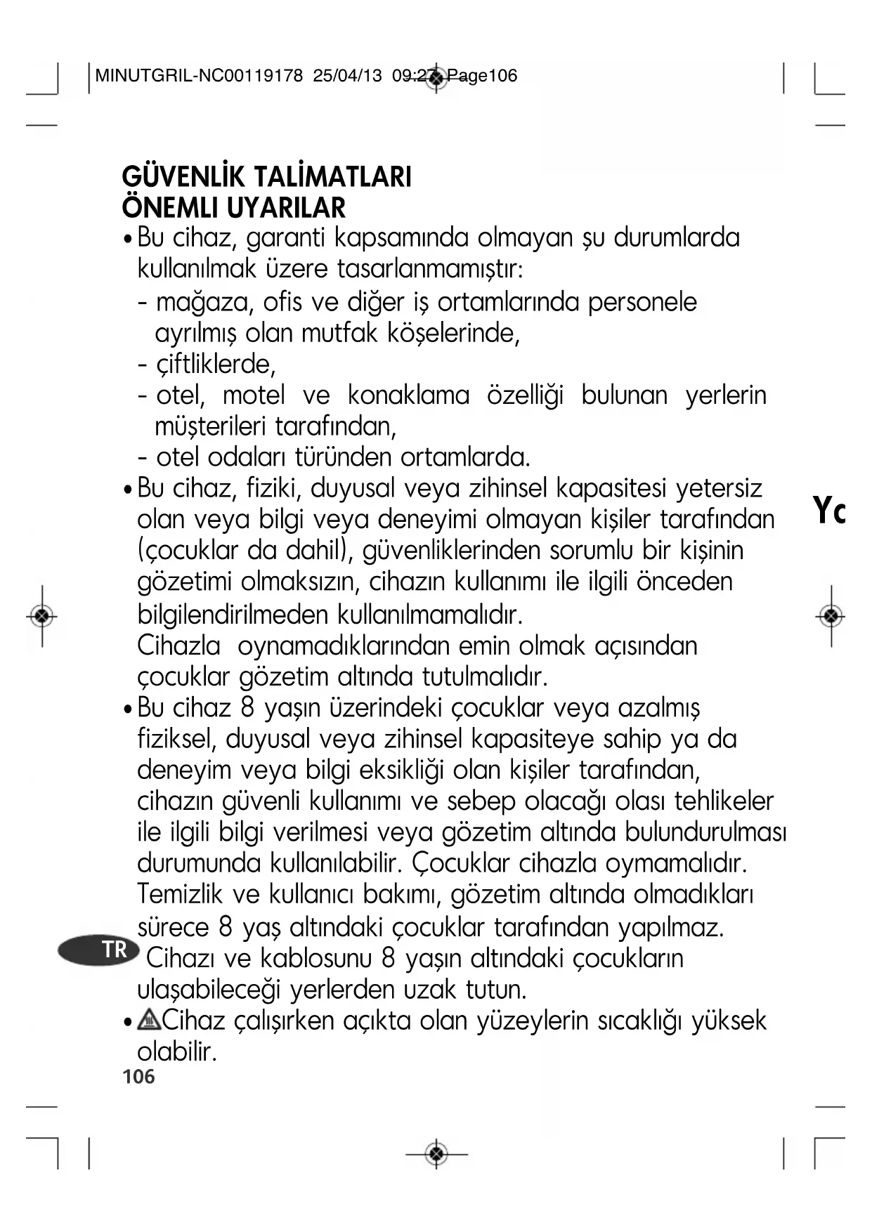 MINUTGRIL-NC00119178 25/04/13 09:27 Page108Kullanım talimatları Kitapçığın sonunda açıklayıcı çizimler mevcuttur.