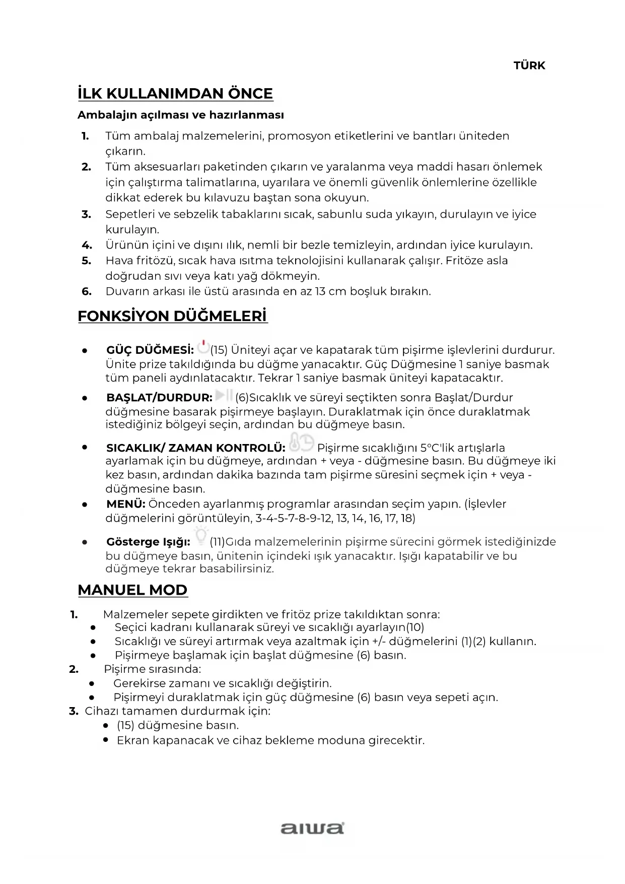 KUMADAI AFR8000 - Fritöz AIWA - Ücretsiz kullanım kılavuzu