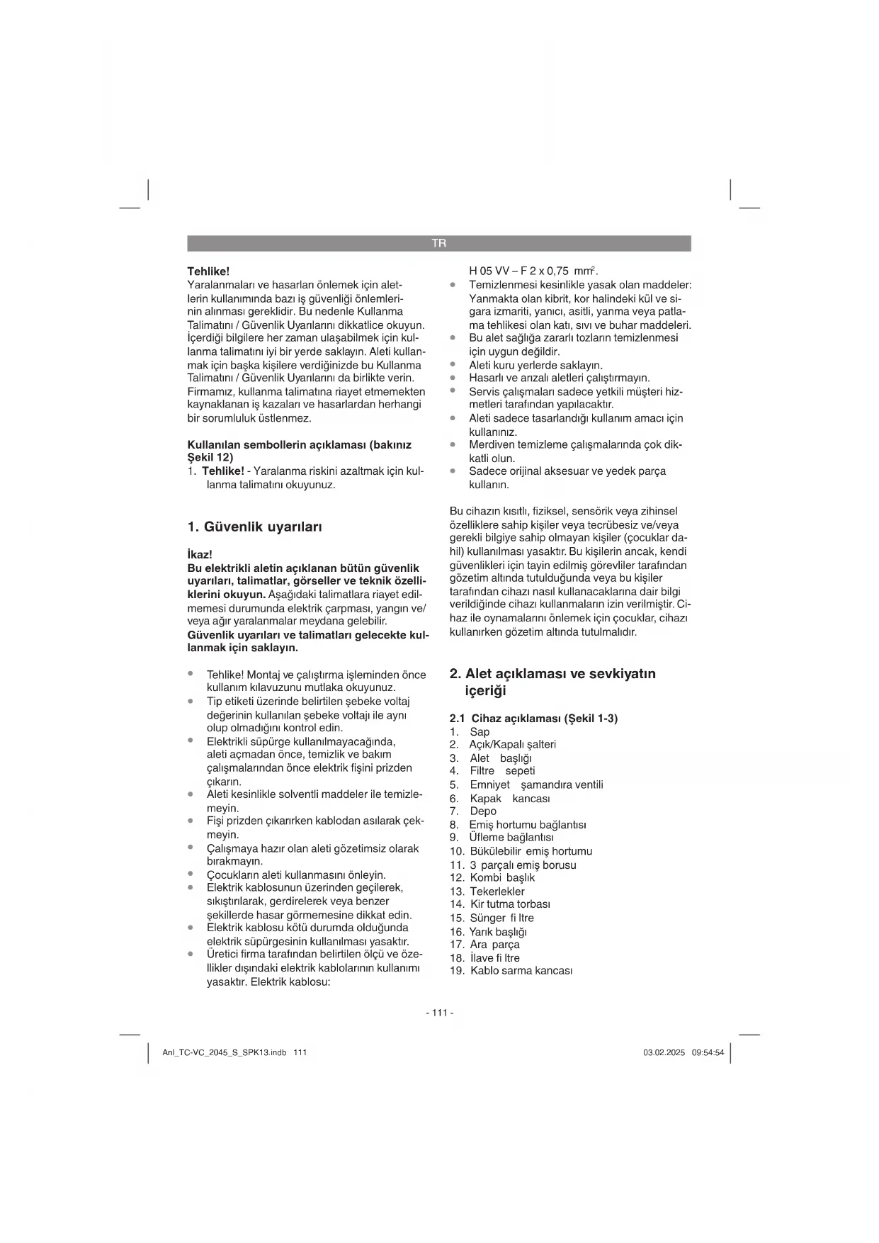 Cihazı her kullanım sonrasında temizlemenizi tavsiye ederiz. Anl_TC-VC_2045_S_SPK13.indb 113Anl_TC-VC_2045_S_SPK13.indb 113 03.02.2025 09:54:5403.02.2025 09:54:54TR