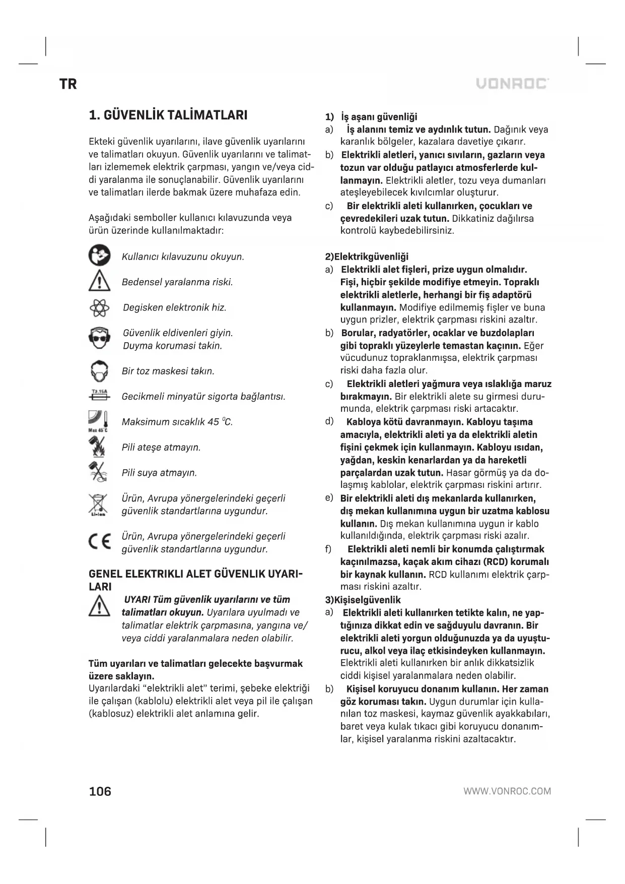 Orijinal talimatların çevirisi 106WWW.VONROC.COM
