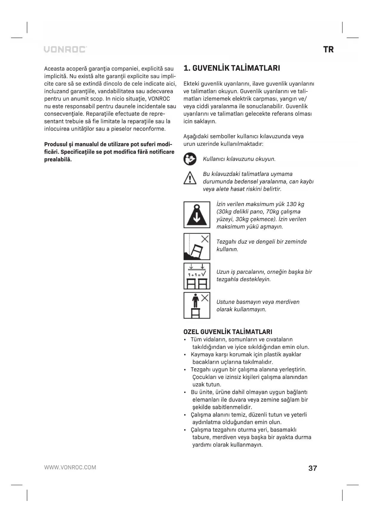 Orijinal talimatların çevirisi 37WWW.VONROC.COM