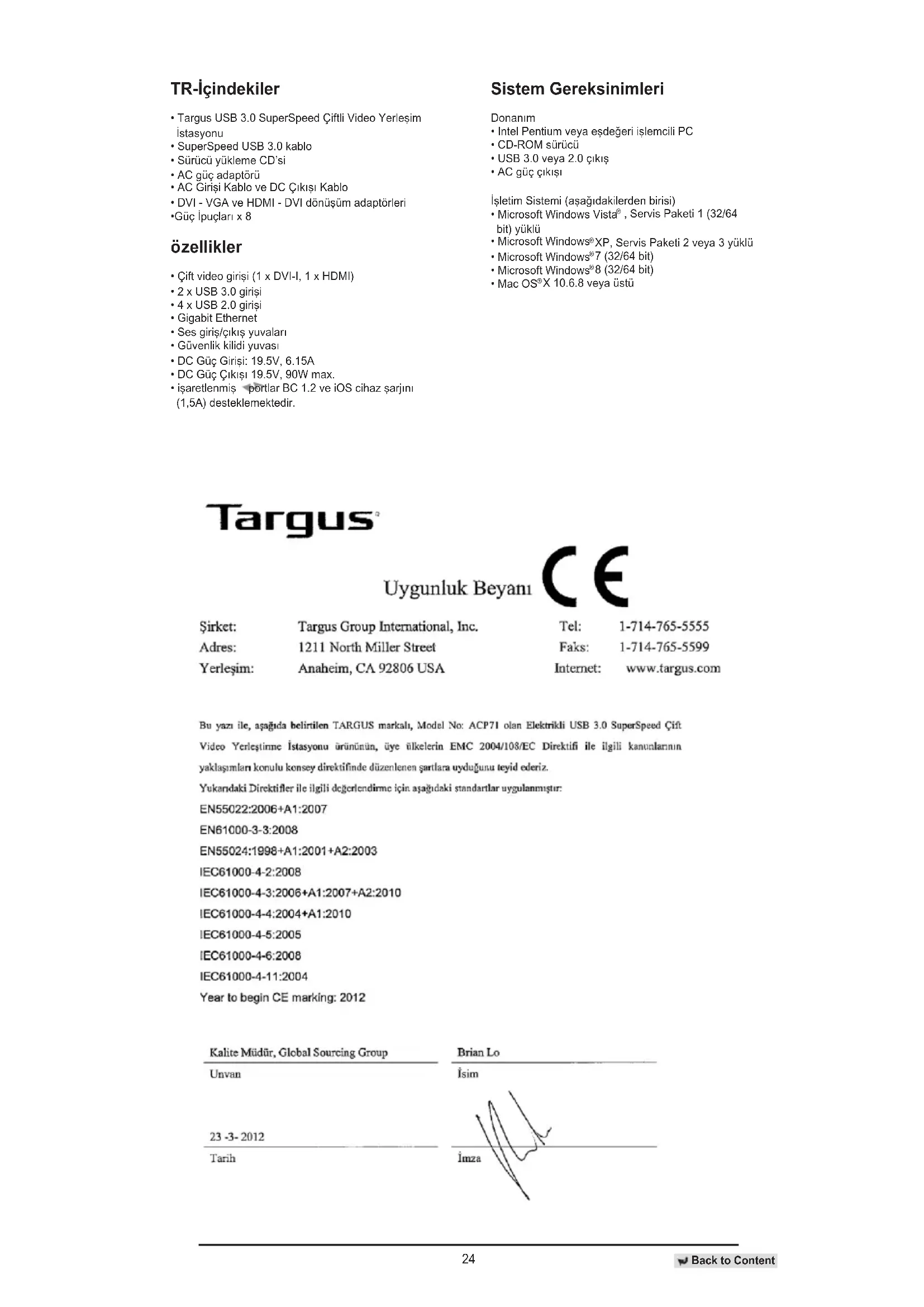 ACP71EU - Yuva istasyonu TARGUS - Ücretsiz kullanım kılavuzu