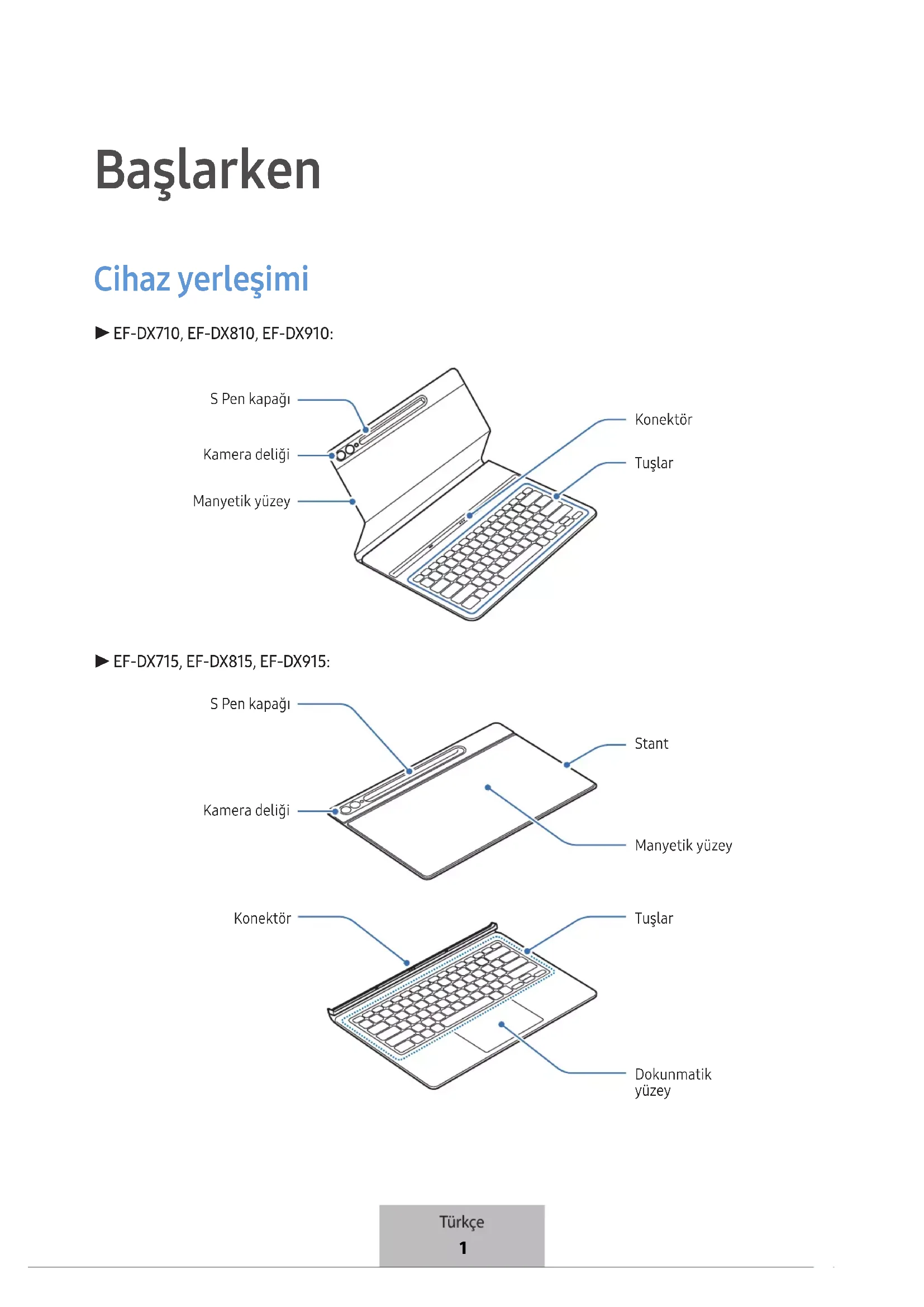 EF-DX715, EF-DX815, EF-DX915: Kamera deliğiStantManyetik yüzey S Pen kapağı Dokunmatik yüzey TuşlarKonektör Türkçe