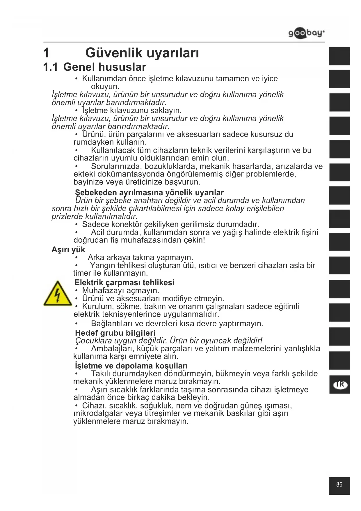 "Açıkama ve fonksiyon" ya da „Güvenlik uyarilari“ böllumunde açıklanandan farkı bir kullanım)yasaktır. uyarilarin dinkkate alınmaması ciddi kazalara, yaralanmalarava maddi hasarlara neden olabilir.