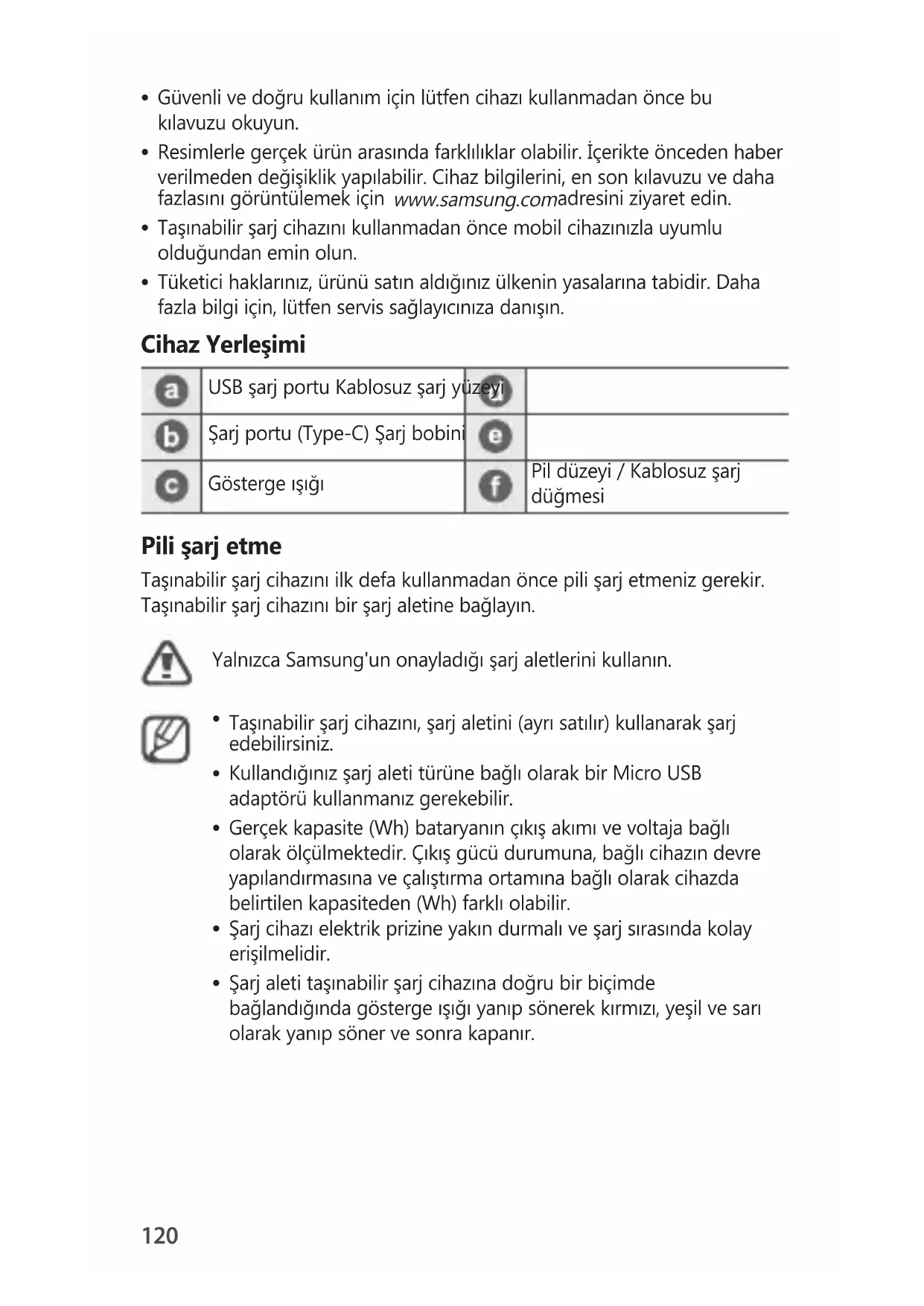 - Resimlerle gibt urünarasinda farkliliklar olabilir. İcerikte önceden haber verilmeden degişiklik yapilabilir. Cihaz bilgilerini, en son kılıvuzu ve daha fazlasini görtülemek icin www.samsung.comadresini ziyaret edin.