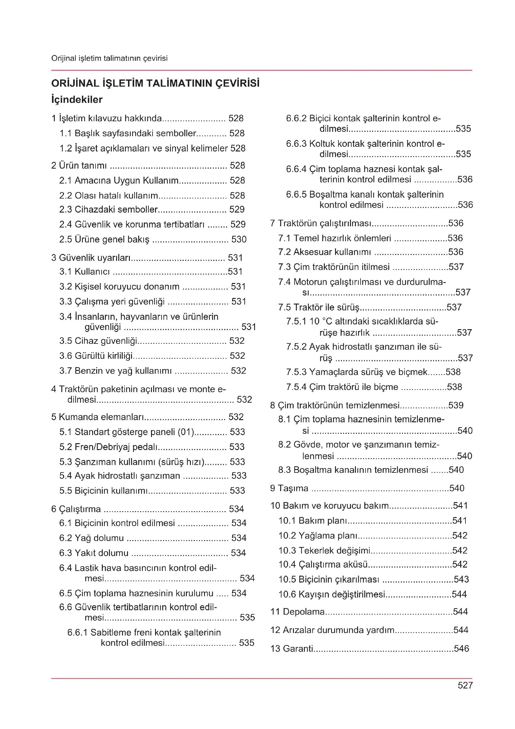 kontrol edilmesi ............................536 7 Traktörün çalıştırılması..............................536