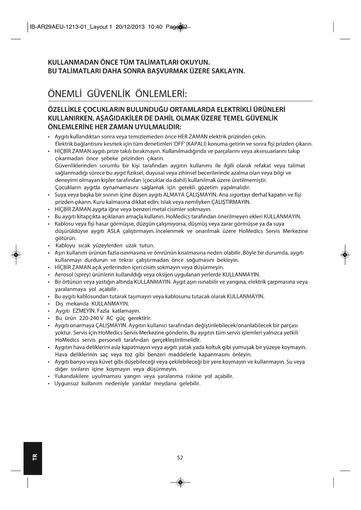 - Uygunsuz kullanım nedeniyle yanıklar meydana gelebilir. IB-AR29AEU-1213-01_Layout 1 20/12/2013 10:40 Page 5253