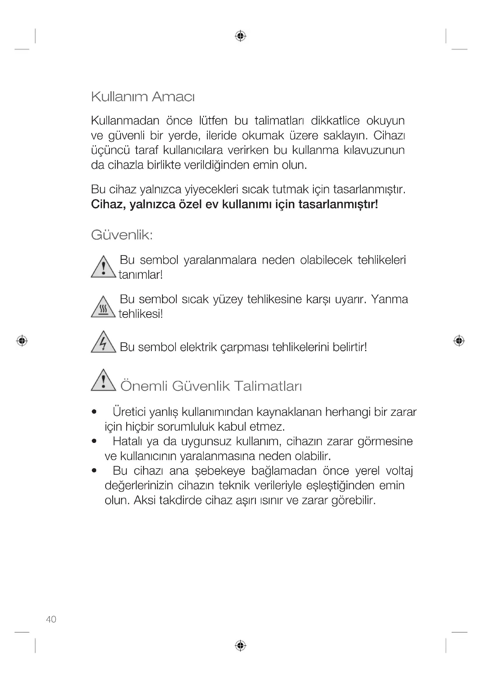- Cihaz kullanım sırasında çok sıcak olabilir, ciddi yanık tehlikesiyle karșı karșıya kalabilirsiniz! Cihaza sadece kulplarından dokunun.