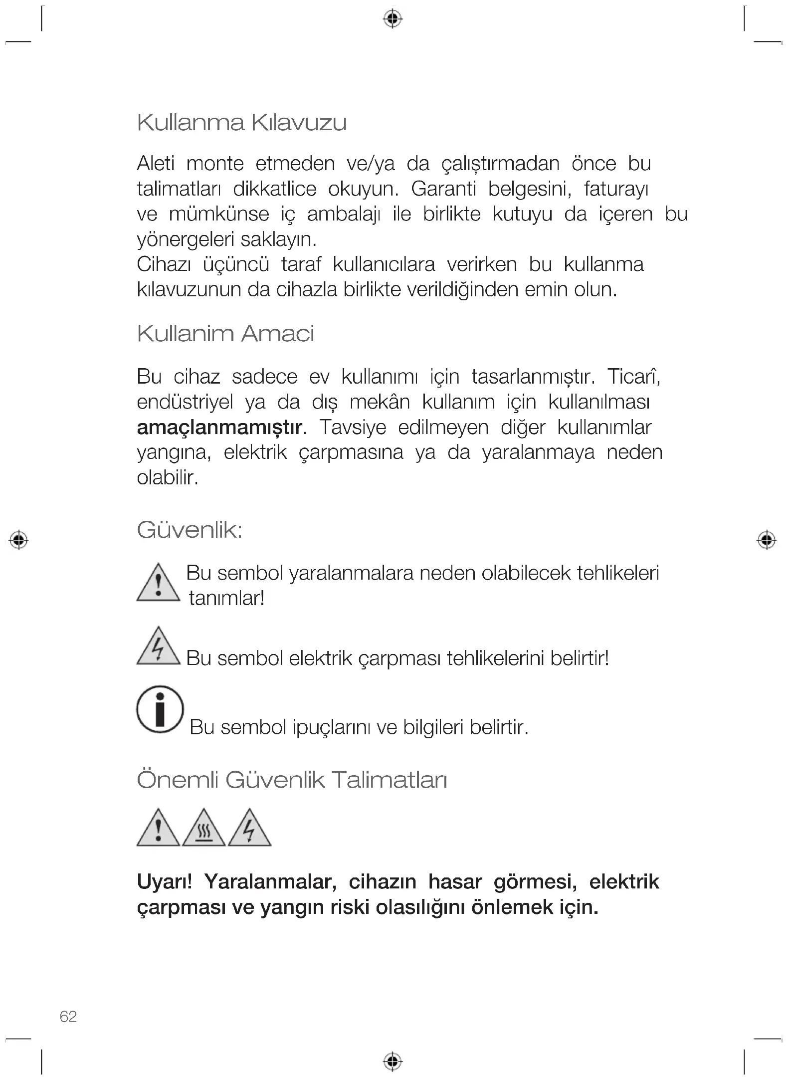 - Hatalı ya da uygunsuz kullanım, cihazın zarar görmesine ve kullanıcının yaralanmasına neden olabilir.