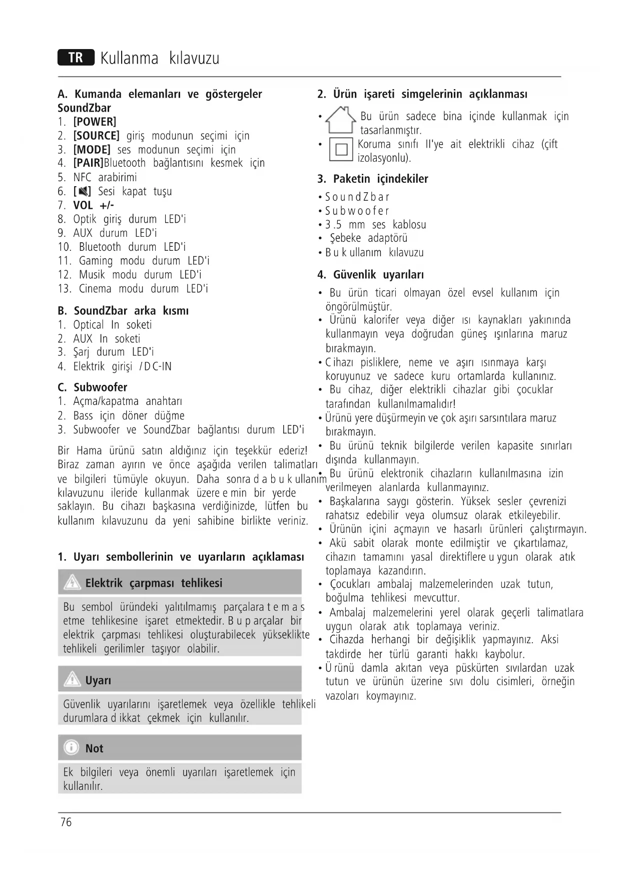 Bir Hama ürünü satın aldığınız için teşekkür ederiz! Biraz zaman ayırın ve önce aşağıda verilen talimatları ve bilgileri tümüyle okuyun. Daha sonradabukullanım kılavuzunu ileride kullanmak üzereemin bir yerde saklayın. Bu cihazı başkasına verdiğinizde, lütfen bu kullanım kılavuzunu da yeni sahibine birlikte veriniz.