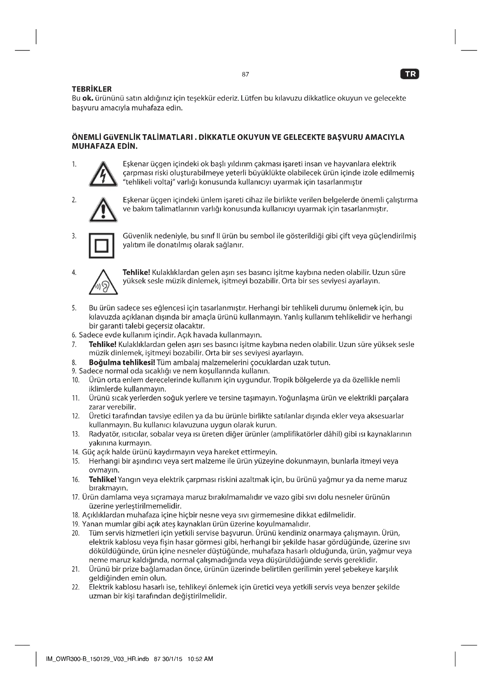 uzman bir kişi tarafından değiştirilmelidir. IM_OWR300-B_150129_V03_HR.indb 87 30/1/15 10:52 AM88