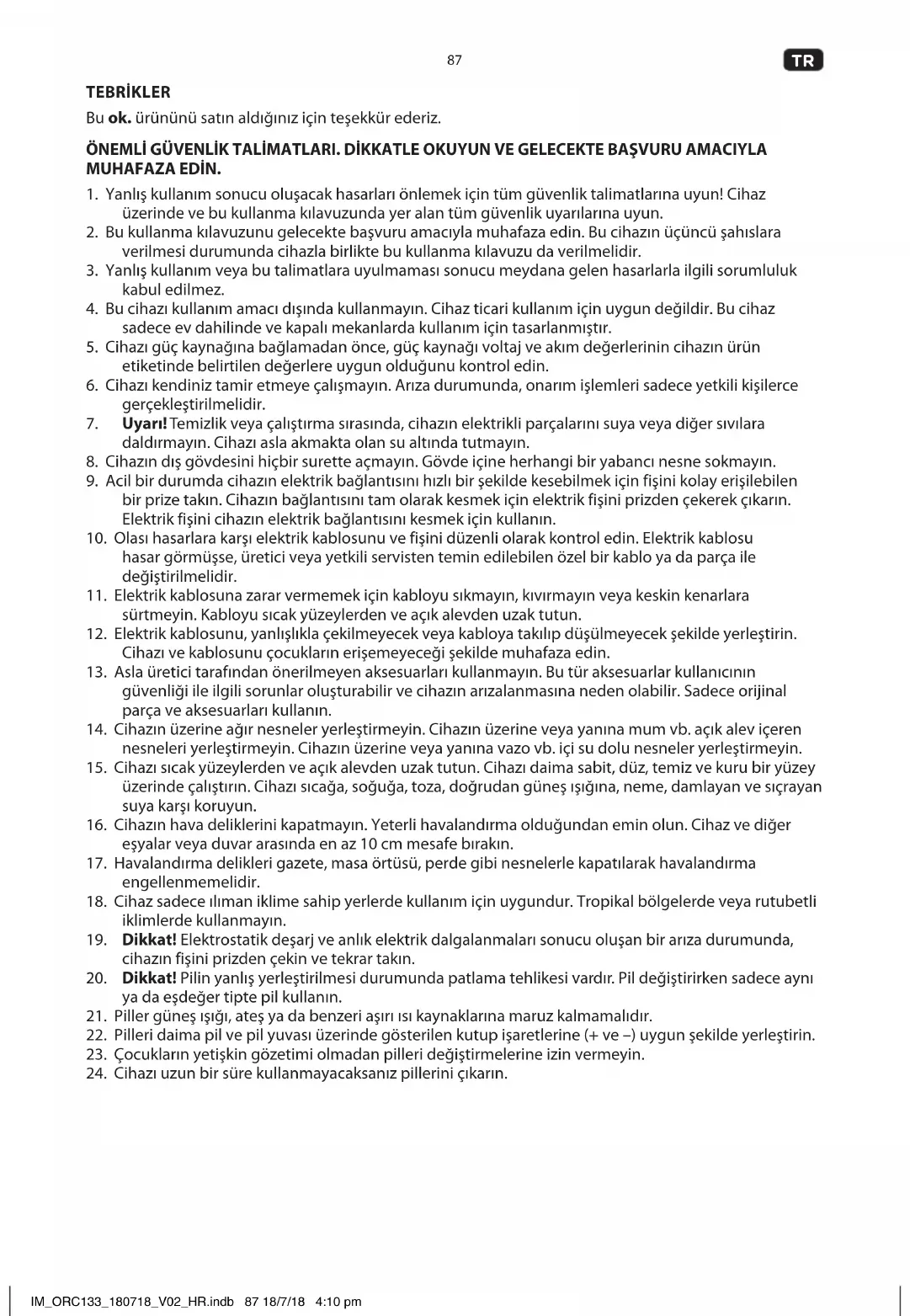 - Radyo alma kaltes kötü • Ürünü başka br yere yerleştrn ve anten tekrar ayarlayın IM_ORC133_180718_V02_HR.indb 92 18/7/18 4:10 pm93