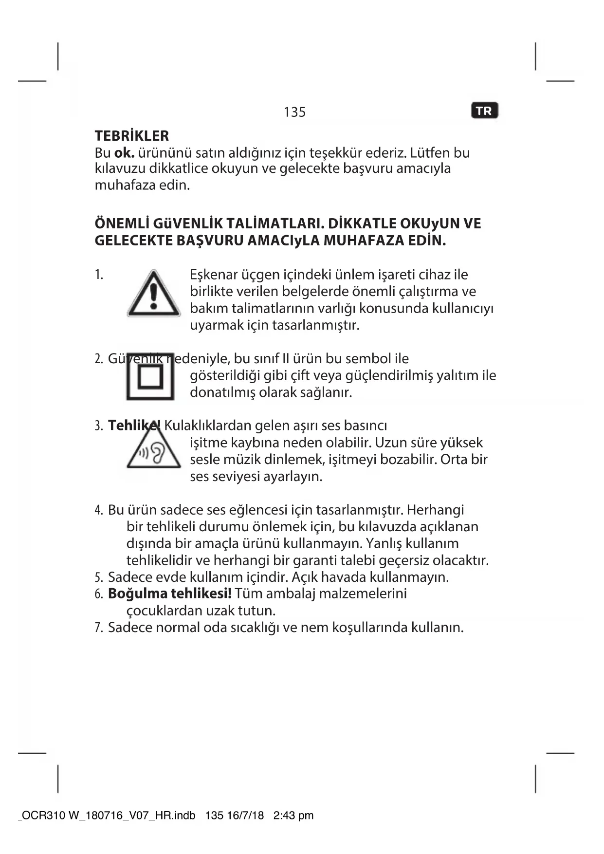 TEBRİKLER Bu ok. ürününü satın aldığınız için teşekkür ederiz. Lütfen bu kılavuzu dikkatlice okuyun ve gelecekte başvuru amacıyla muhafaza edin. ÖNEMLİ GüVENLİK TALİMATLARI. DİKKATLE OKUyUN VE GELECEKTE BAŞVURU AMACIyLA MUHAFAZA EDİN.