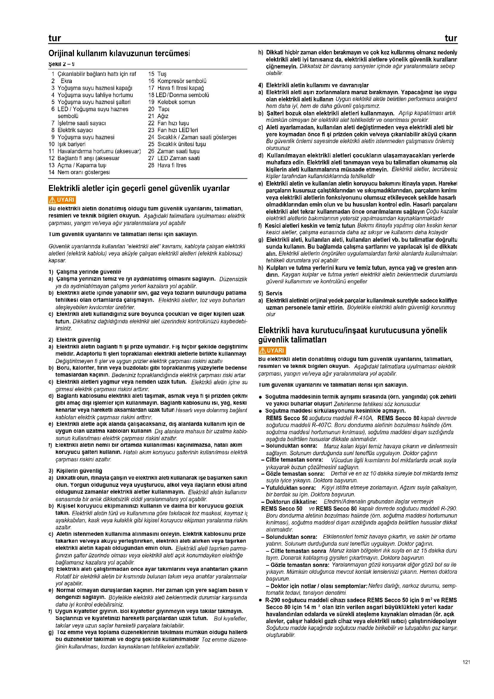 Soğuk ortam sıcaklığında ve/veya sürekli çalışmada aksamda buzlanma olabilir. REMS Secco 50 buzlanma LED’i yanar (Şek. 6 (18)). REMS Secco 80 cihazında buzlanma sembolü (18) ekranda (2) görüntülenir.