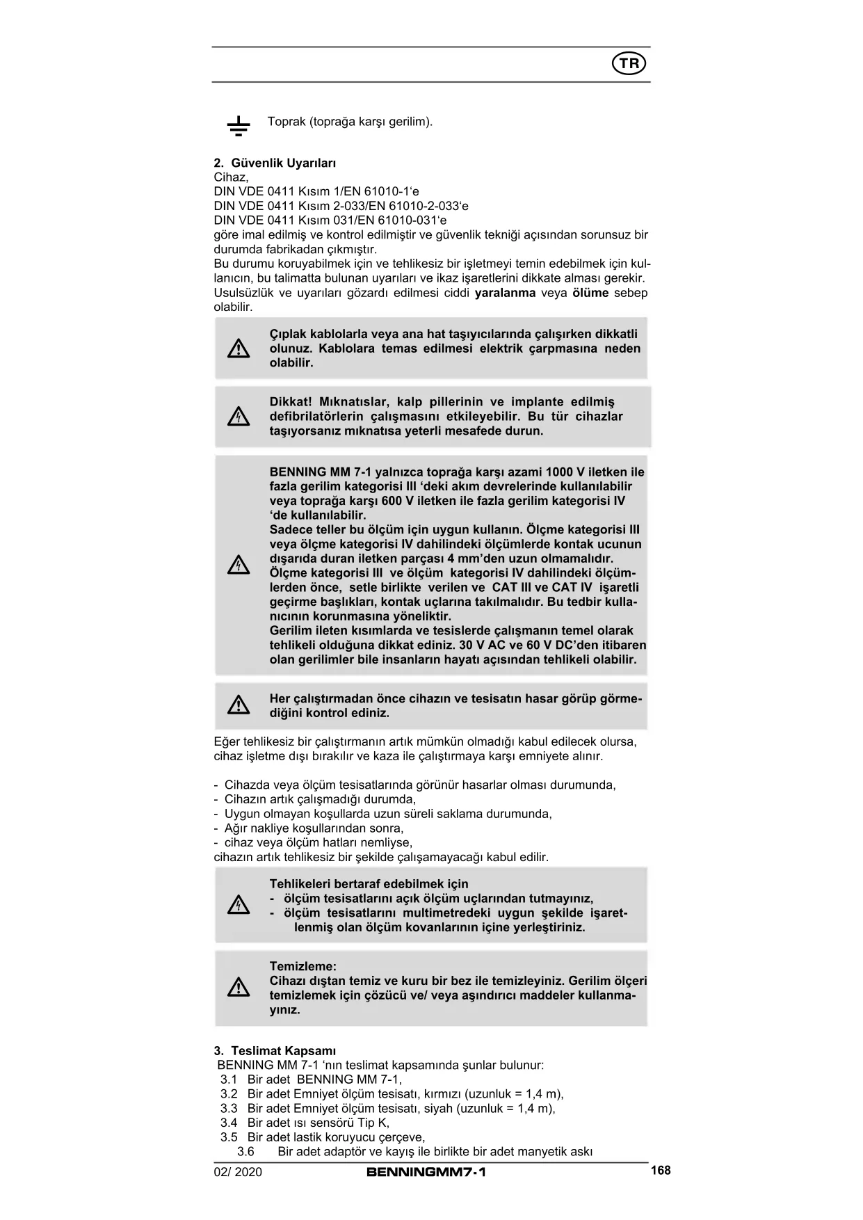 5.1.20 Birlikte verilmiş olan emniyet ölçüm tesisatlarının BENNING MM 7-1’nin