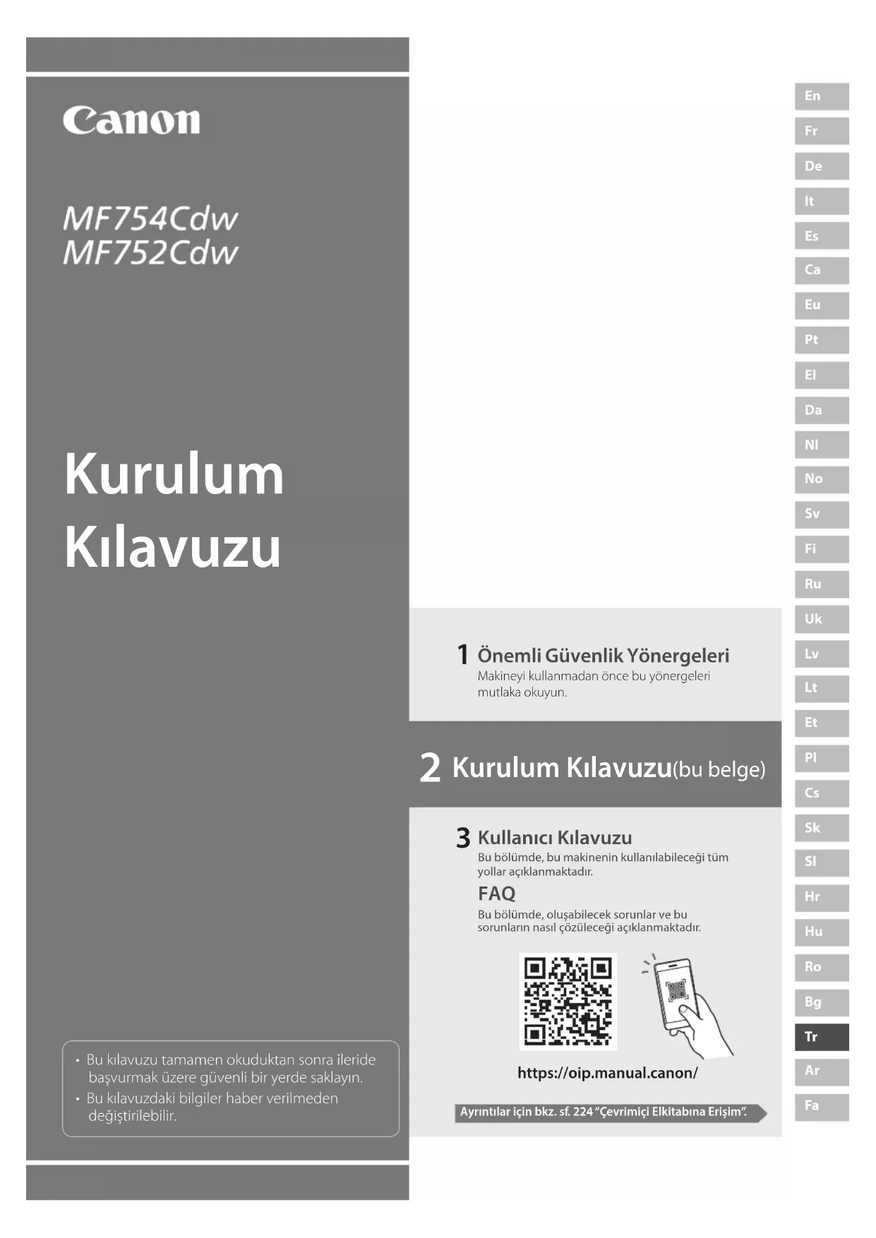 Kurulum Kılavuzu (bu belge) Kurulum Kılavuzu https://oip.manual.canon/