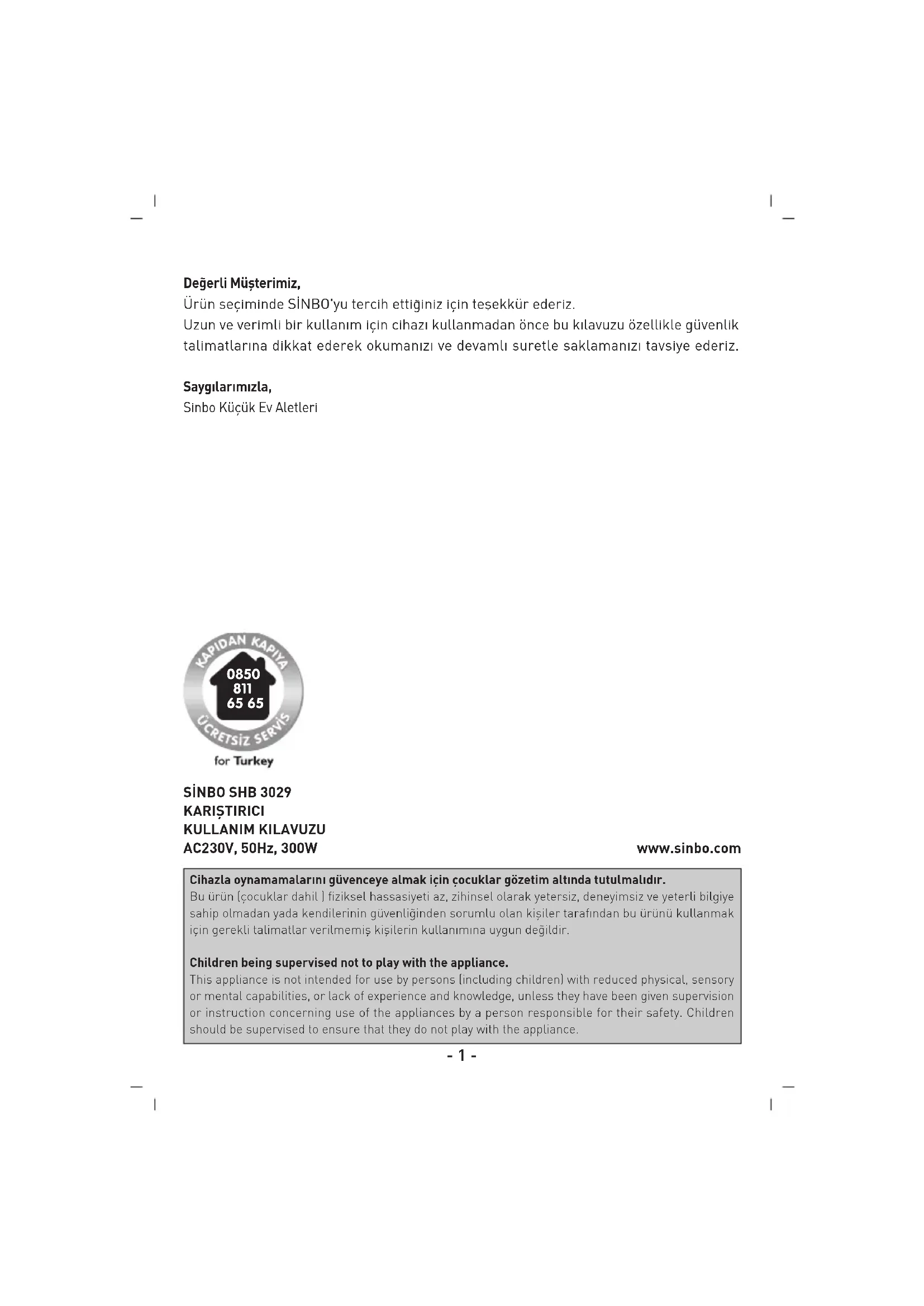 KULLANIM KILAVUZU SHB 3029 SINBO