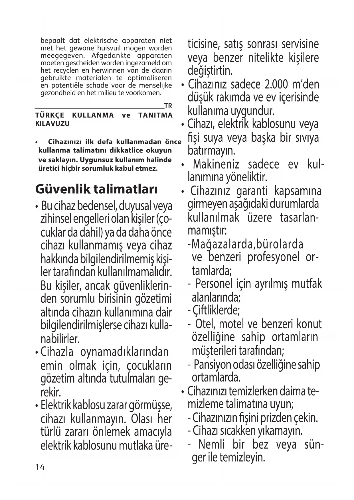 - Makineniz sadece ev kul- lanımına yöneliktir.