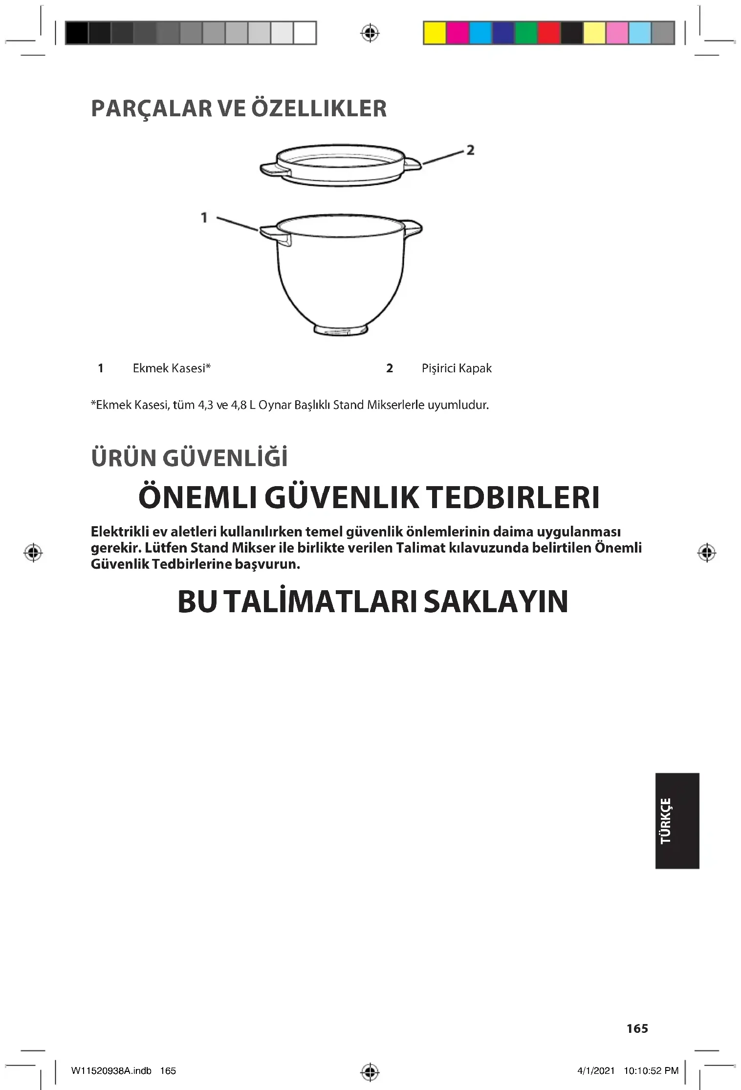 NOT: Ürün kullanım adımları tarif kartına göre düzenlenmiştir. Tarif adımları diğer tarif kitaplarındaki farklı tariflere göre değişiklik gösterebilir. Pişirici Kapaklı Ekmek Kasesi fırında kullanılabilir (en fazla 260°C/500°F). W11520938A.indb 167W11520938A.indb 167 4/1/2021 10:10:58 PM4/1/2021 10:10:58 PM168
