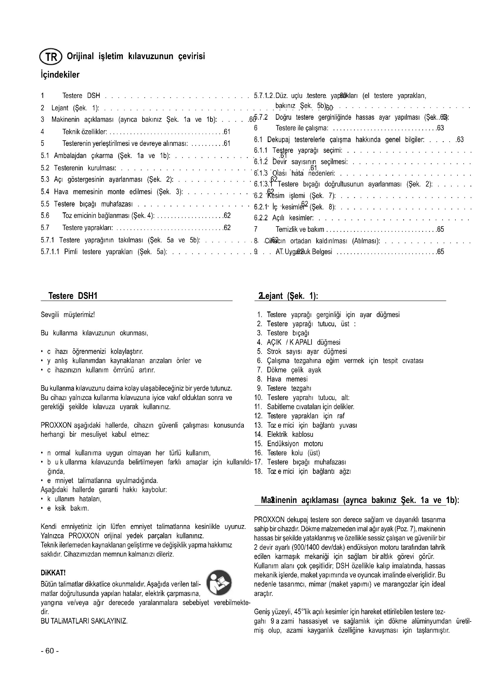 DSH - Testere PROXXON - Ücretsiz kullanım kılavuzu