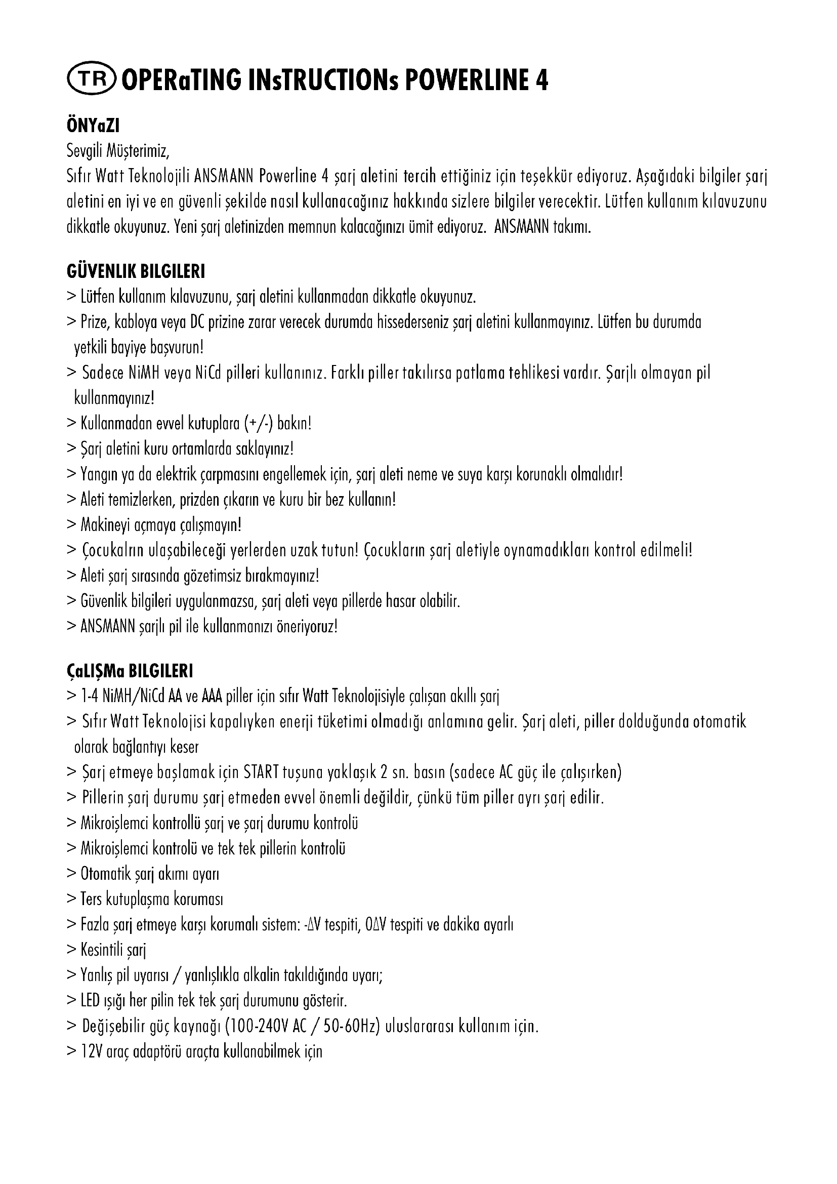 Powerline 4 Zero Watt - Pil şarj cihazı ANSMANN - Ücretsiz kullanım kılavuzu
