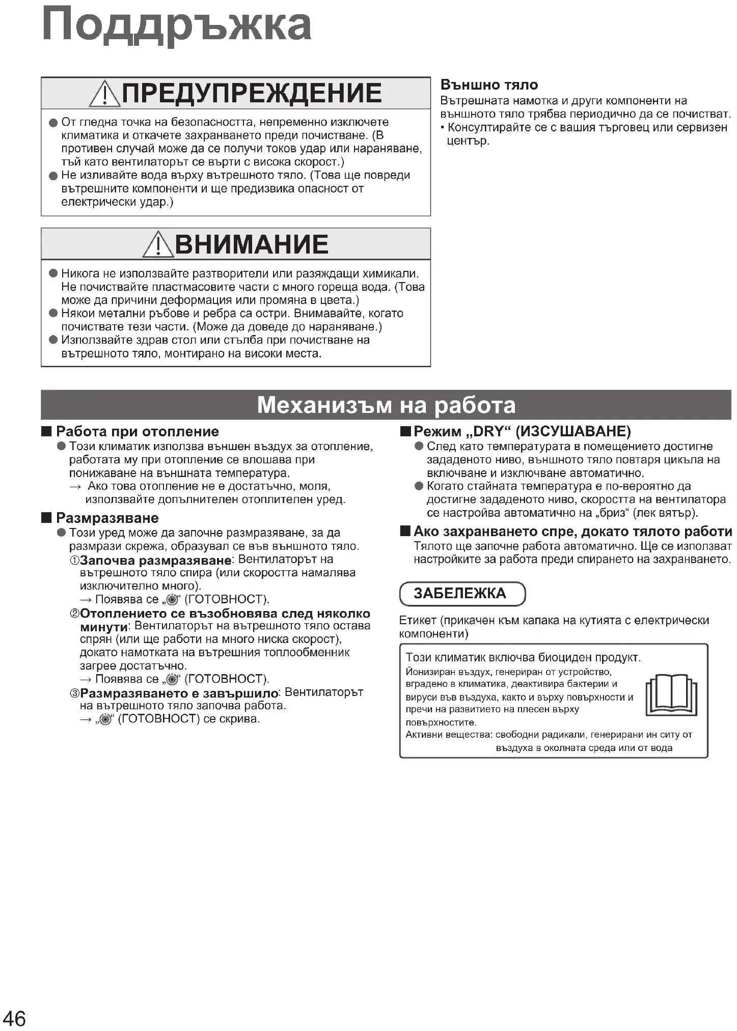 Ünite otomatik olarak çalışmaya devam eder. Elektrik kesintisi öncesindeki çalışma ayarları kullanılır. Etiket (elektrikli bileşenler kutusunun kapağına yapıştırılır)Klima bir biyosidal ürün içerir.Klimaya takılı olan bir cihaz tarafından üretilen iyonize hava, ortam havasındaki ve yüzeylerdeki bakteri ve virüsleri etkisiz hale getirir ve yüzeylerde küf oluşumunu engeller.Aktif maddeler: ortam havasından veya sudan dolayı sahada ortaya çıkan serbest radikaller UYARI