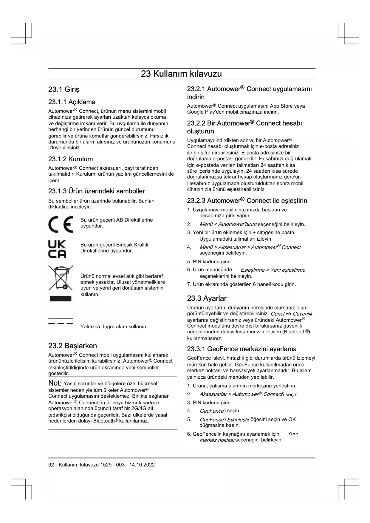 94 - Kullanım kılavuzu 1529 - 003 - 14.10.202223.7 Tercüme Edilmiş AB Uyumluluk Bildirimi