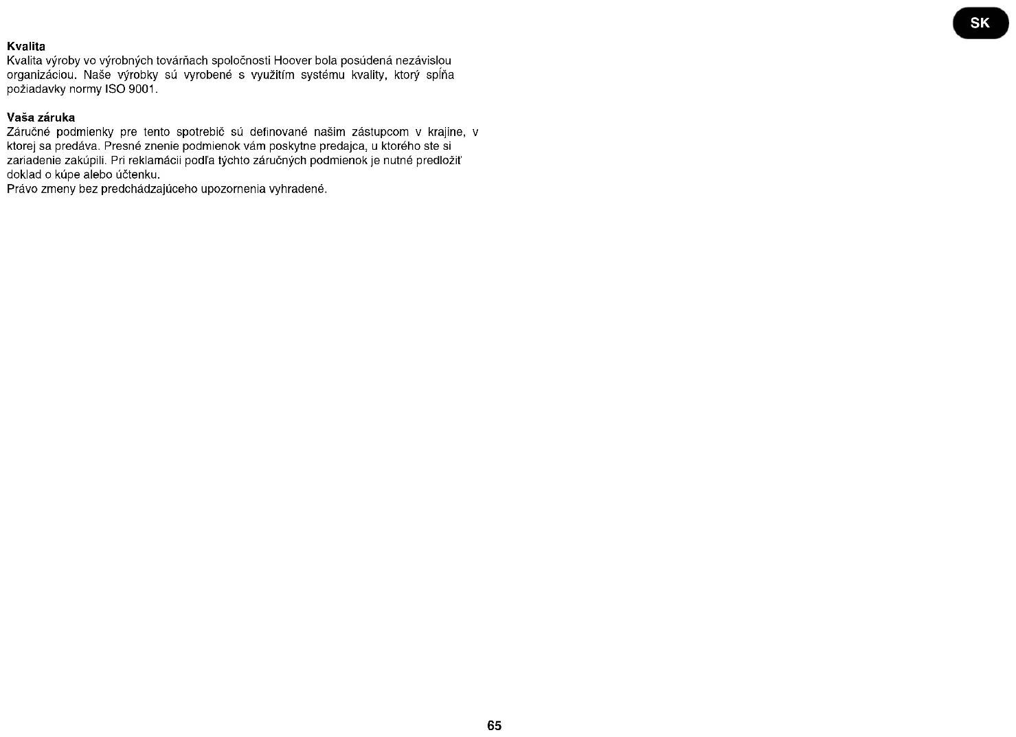 HOOVER YEDEK PARÇA VE SARF MALZEMELERİ Parçaları daima orijinal Hoover parçaları ile değiştirin. Bu parçaları Hoover servislerinden tedarik edebilirsiniz. Parça siparişi verirken mutlaka cihazın model numarasını belirtin. Hoover Servisi Herhangi bir hizmete ihtiyacınız olduğunda, lütfen bölgenizdeki Hoover Müşteri Hizmetleri ile irtibata geçiniz. Kalite Hoover fabrikalarının kalitesi bağımsız olarak takdir almıştır. Ürünlerimiz, ISO 9001 gereksinimlerini içeren bir kalite sistemi kullanılarak üretilmektedir.