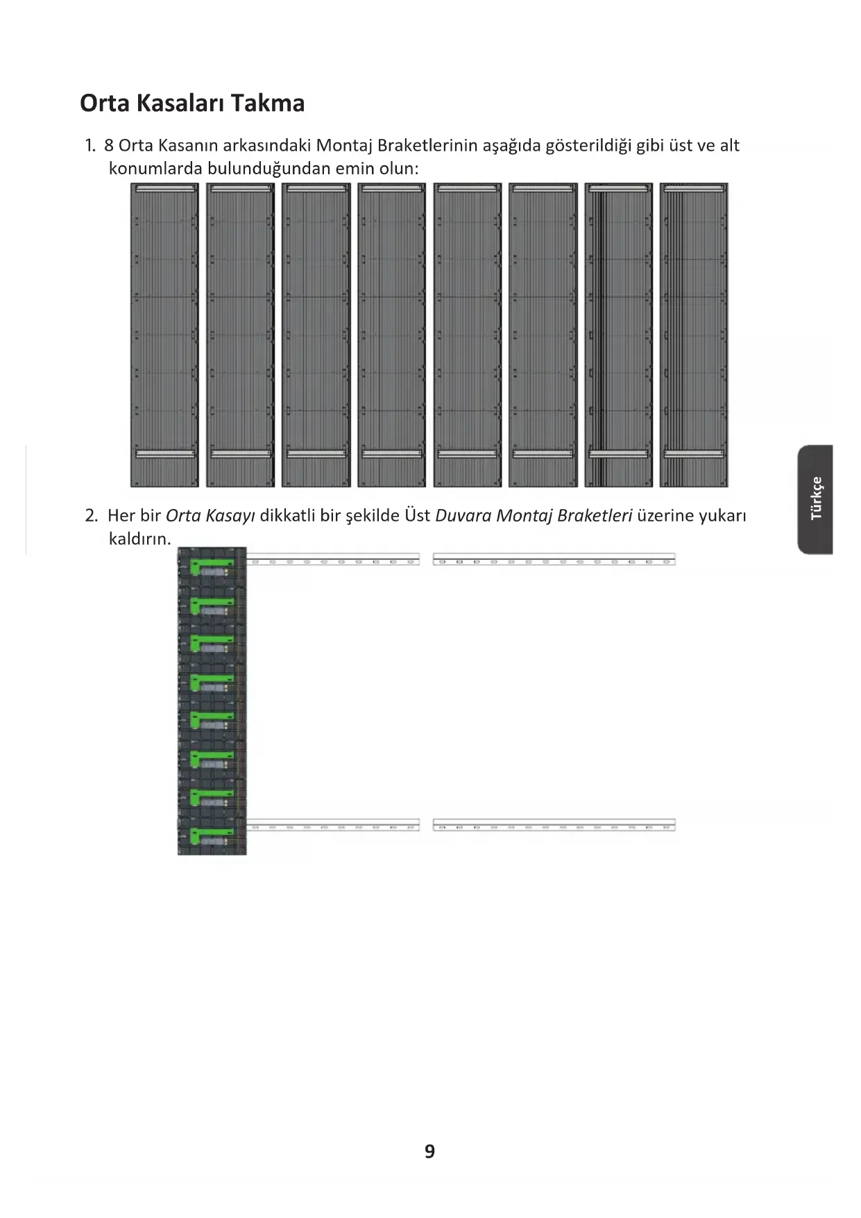 5. Kalan Kabinler’i Üst Duvar Montaj Braketleri’nin üzerine yerleştirin. Montaj Braketle-