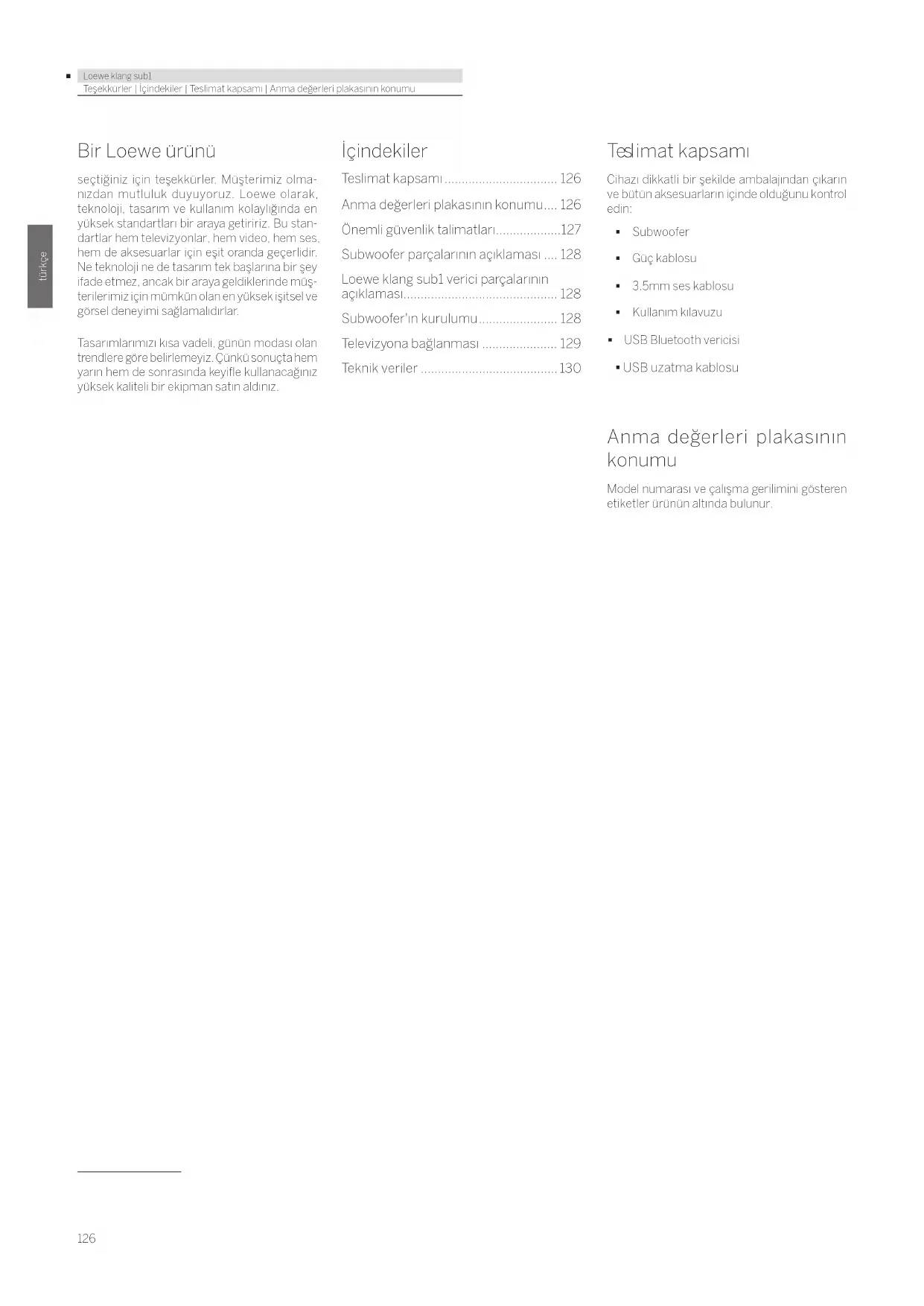 sectiginiz icin tesekkurler. Musterimiz olmanizdan mutluluk duuyuoruz. Loewe orak, teknojiti tasarim ve kullanim kolayliginda en yuksek standartlan bir araya getiririz. Bu standartlar hem televizyonlar, hem video, hem ses, hem de aksesuarlar icin esit oranda gezerlidir. Neteknojine tatasarim tek baslarna bir sey ifade etmz, ancak bir araya geldiklerinde musterlerimiz icin mumkun alan en yuksek isitsel ve gorsel deneyimi saglamaldirlar.