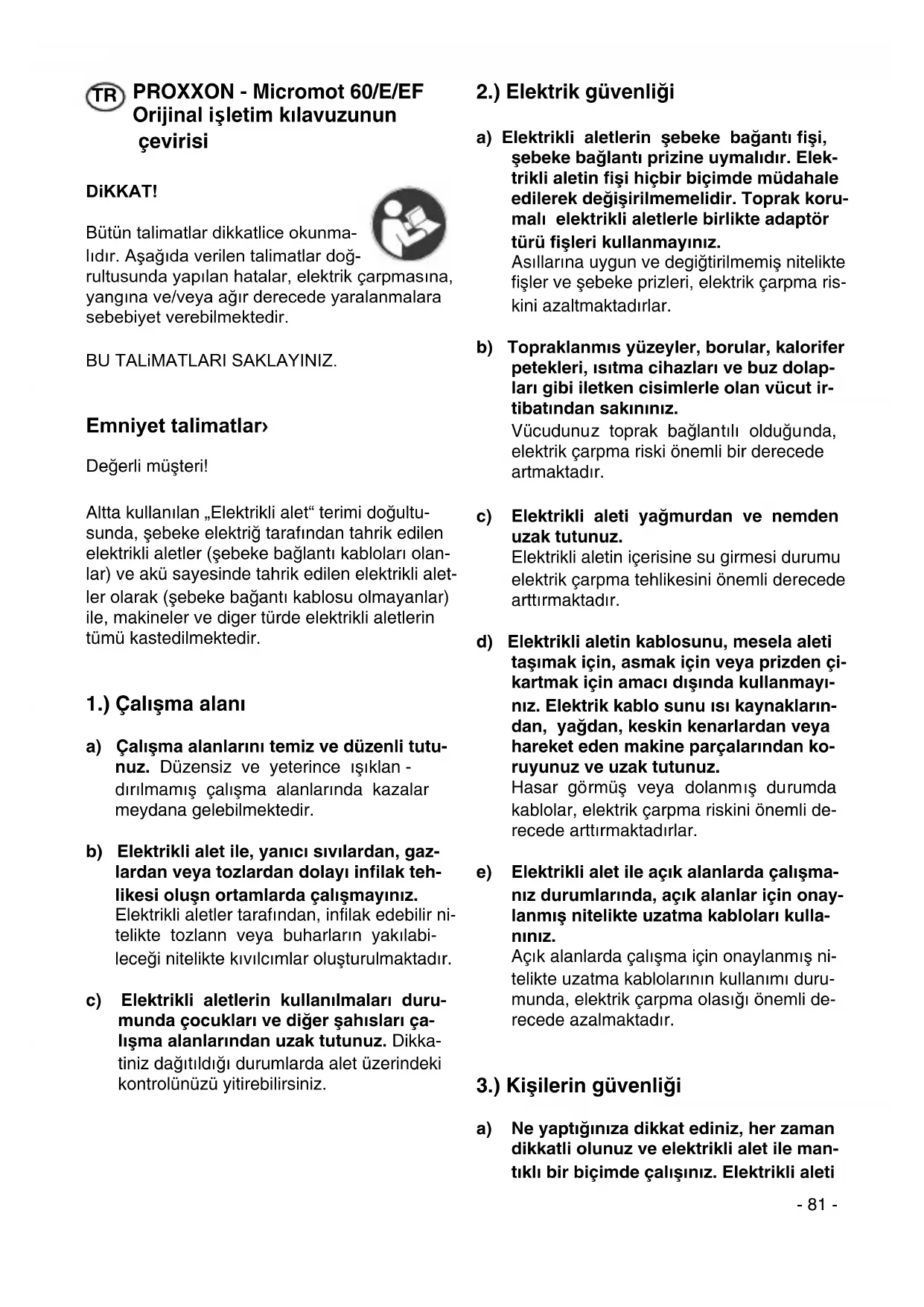 KULLANIM KILAVUZU MicroMot 60E PROXXON