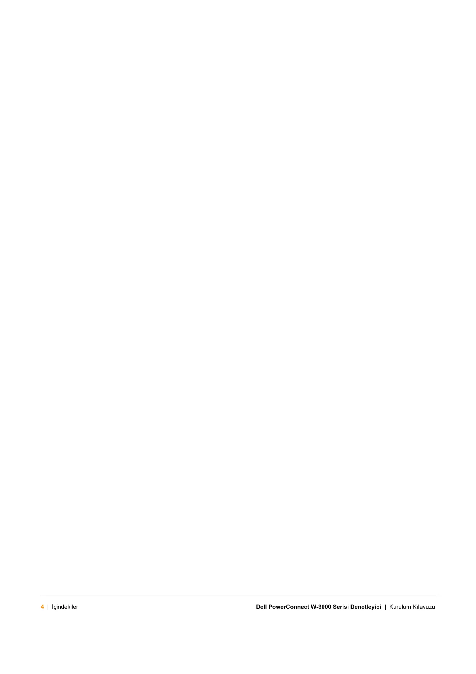- Avrupa Birliği RoHS (Tehlikeli Maddelerin Kısıtlanması) | İçindekiler Dell PowerConnect W-3000 Serisi Denetleyici | Kurulum KılavuzuDell PowerConnect W-3000 Serisi Denetleyici | Kurulum Kılavuzu Bu Kılavuz Hakkında | 5 Bu Kılavuz Hakkında Bu önsöz şu bilgileri içerir: z Sayfa 5 “Kılavuza Genel Bakış” z Sayfa 5 “İlgili Belgeler” z Sayfa 5 “Dell ile İletişim” Kılavuza Genel Bakış z Sayfa 7, Bölüm 1 “PowerConnect W-3000 Serisi Denetleyiciler Hakkında”, W-3000 Serisi Denetleyiciler içindeki üç denetleyiciler donanımına kapsamlı bir genel bakış sunar: W-3200, W-3400 ve W-3600. z Sayfa 13, Bölüm 2 “W-3000 Serisi Denetleyiciler Kurulumu”, rafa montaj ve kurulum talimatlarını içerir. z Sayfa 17, Ek A “Spesifikasyonlar, Güvenlik ve Uygunluk”, ürün teknik spesifikasyonlarını, güvenlik ve yönetmelikler yönünden uygunluk bilgilerini içerir. İlgili Belgeler Bu kılavuzda aşağıdaki belgelere atıfta bulunulmaktadır. Söz konusu belgeler, Dell Denetleyici Mobilite Denetleyicisinin başarılı bir şekilde kurulması için gereken belgeler toplamının bir parçası olarak kabul edilmektedir: p. 194