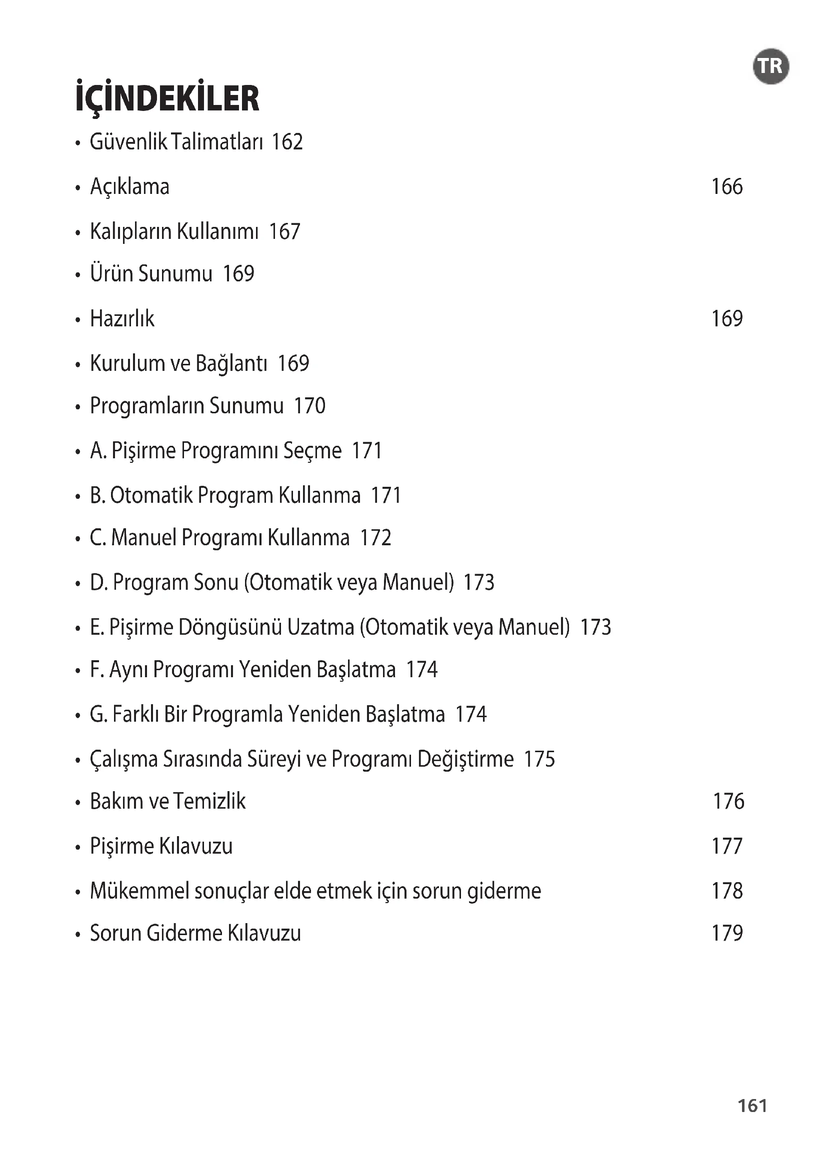 - E. Pişirme Döngüsünü Uzatma (Otomatik veya Manuel) 173
