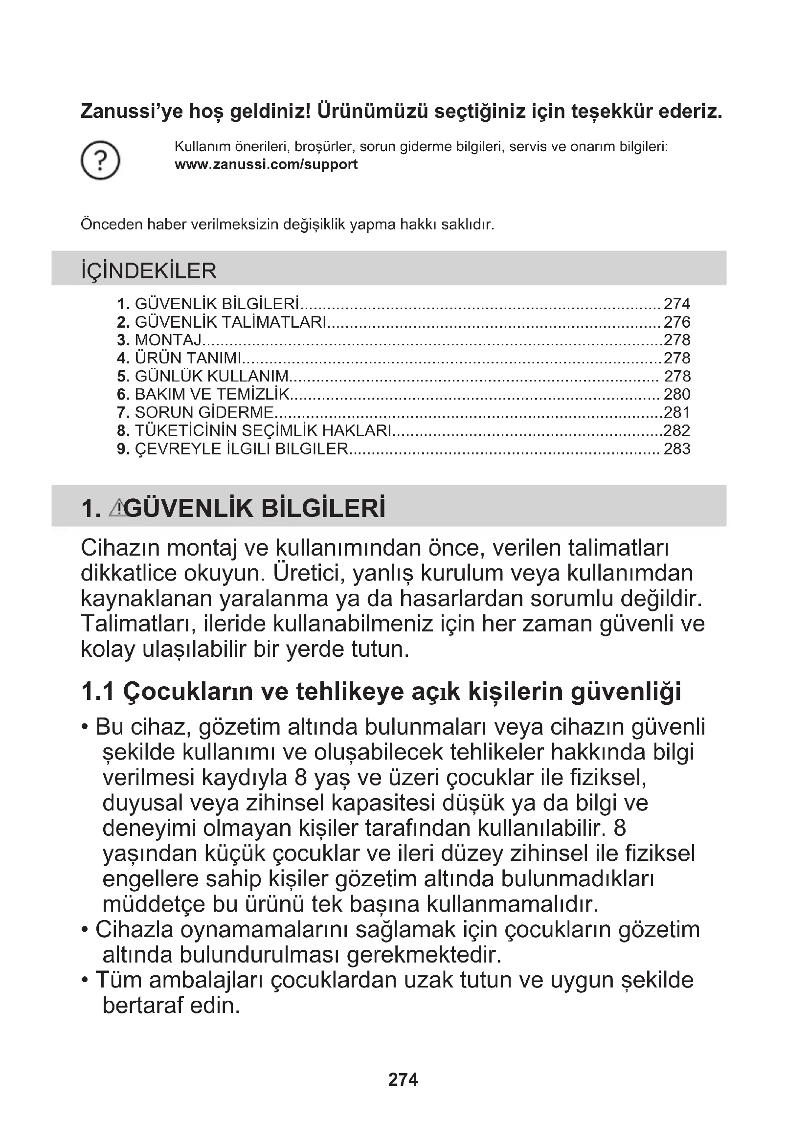 - Tüm ambalajları çocuklardan uzak tutun ve uygun şekilde bertaraf edin. 274• Cihaz çalışırken çocukları ve hayvanları cihazdan uzak tutun.