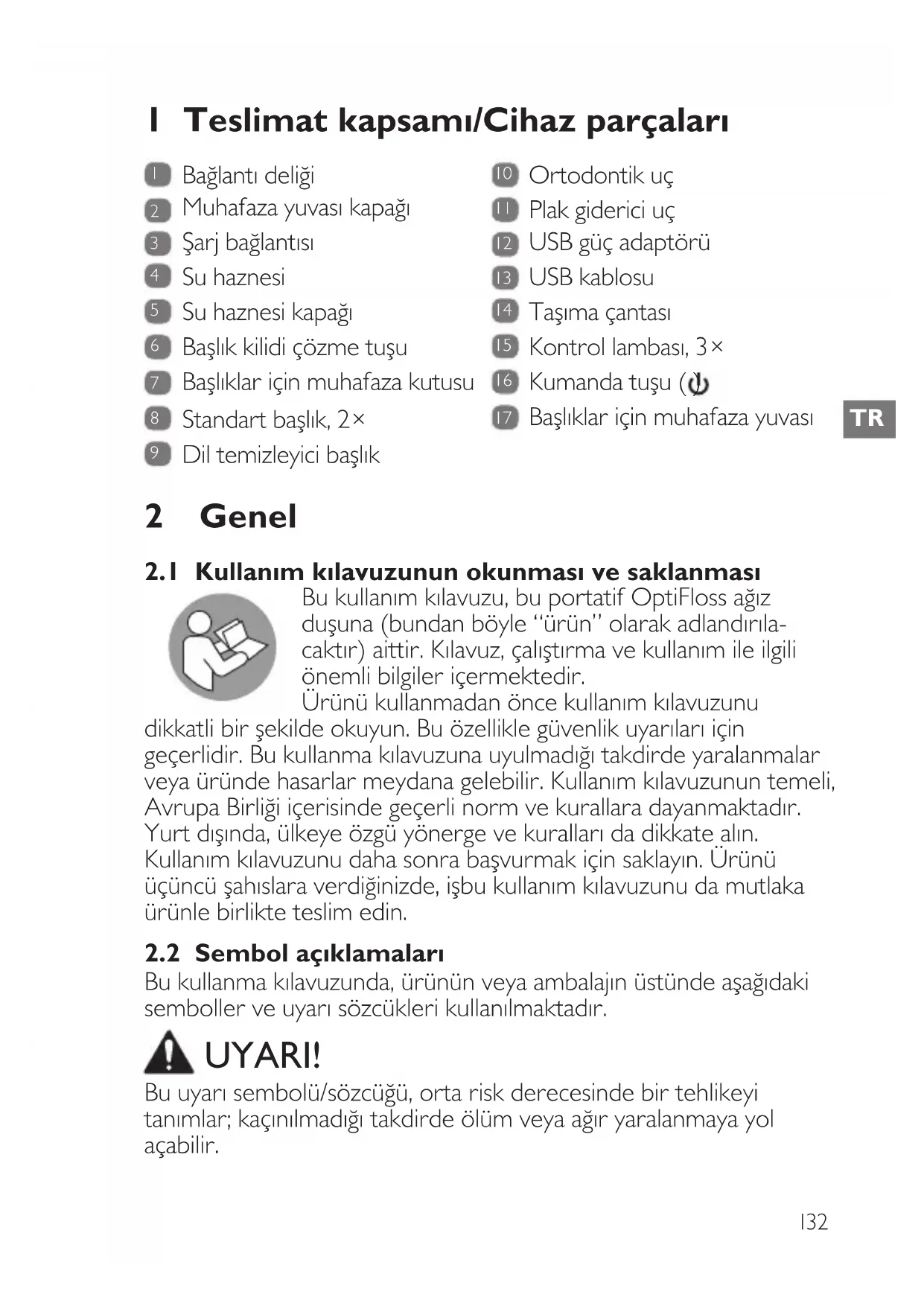 2.1 Kullanım kılavuzunun okunması ve saklanması ___________________ 132
